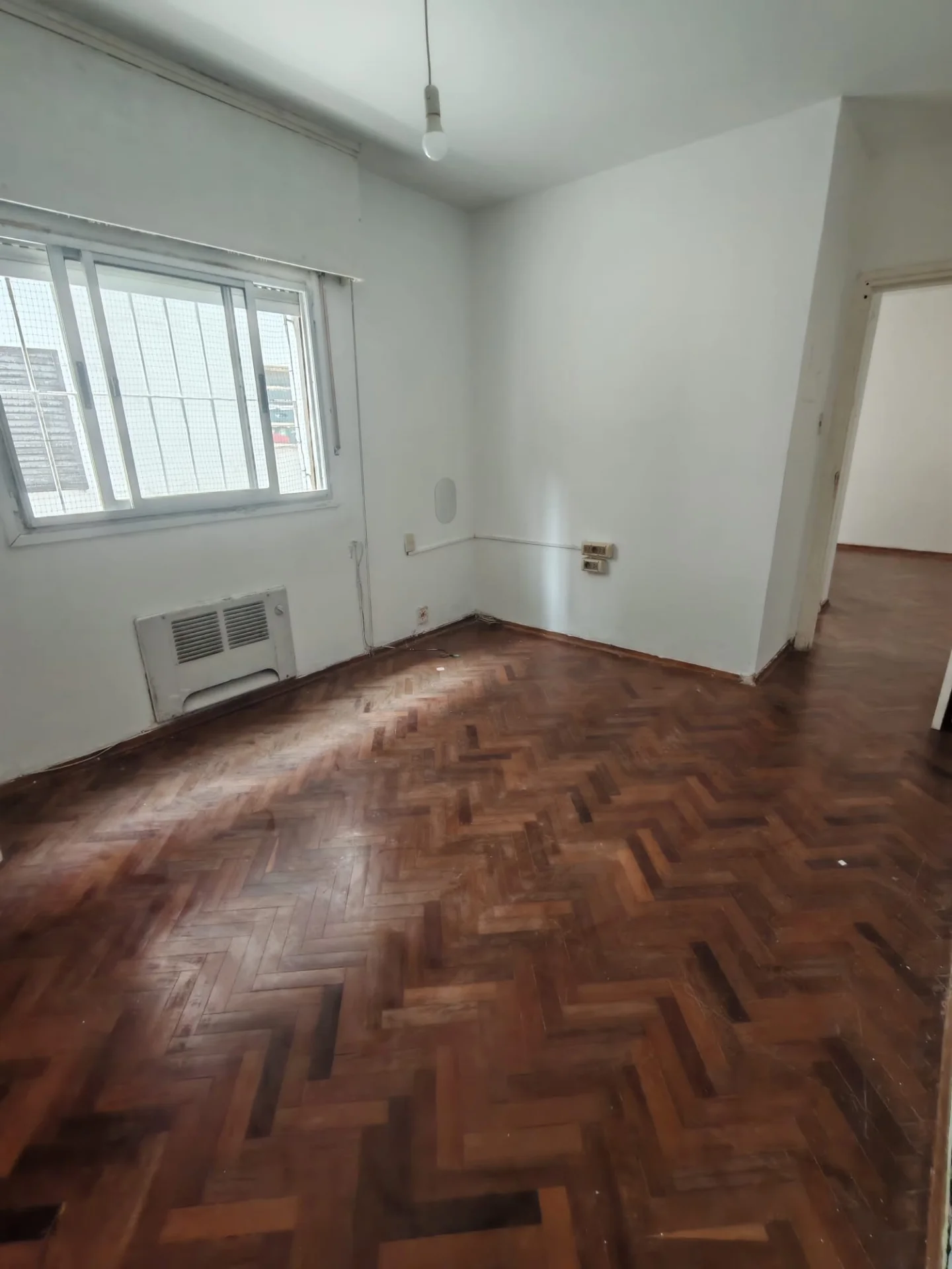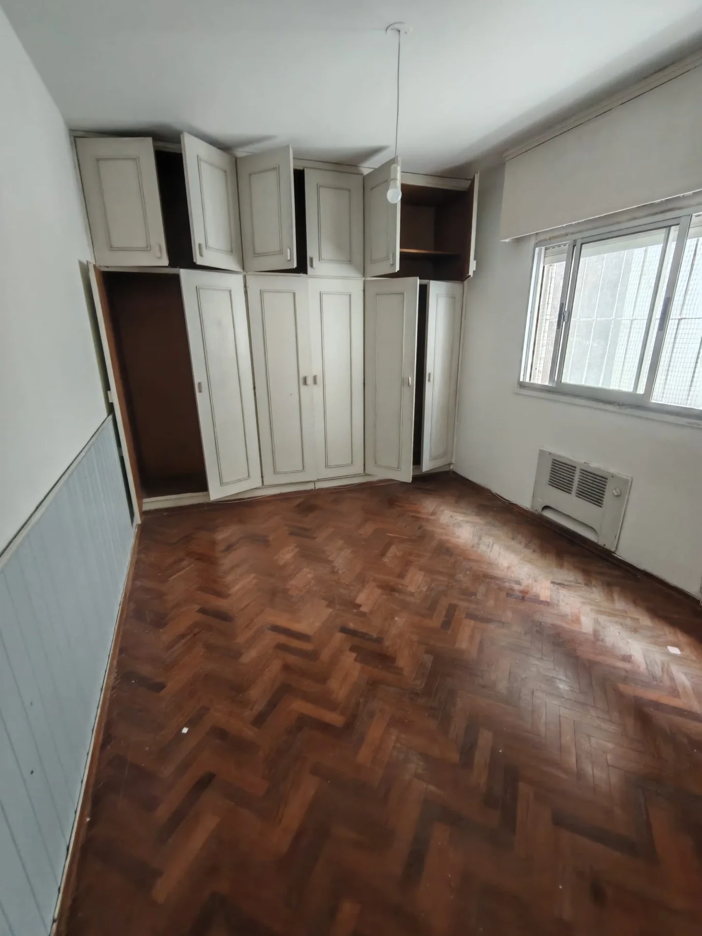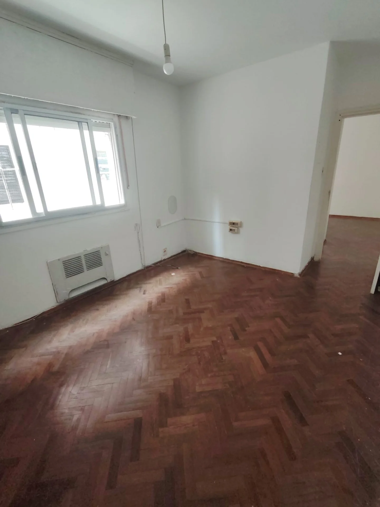 El amplio dormitorio es un verdadero santuario, equipado con elegantes placares empotrados y pisos de parquet que añaden calidez y sofisticación. Disfrute de la tranquilidad y la privacidad de un contrafrente con vistas despejadas al exterior.
