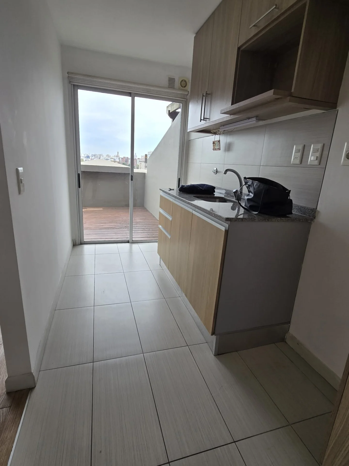 Cocina semi definida, amplia, con acceso a la terraza