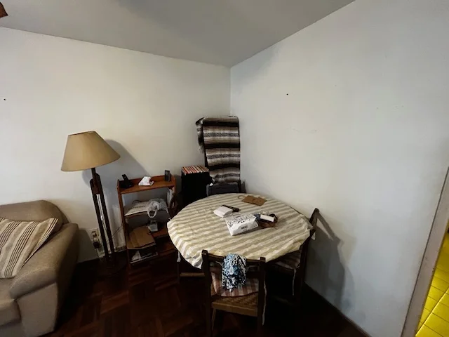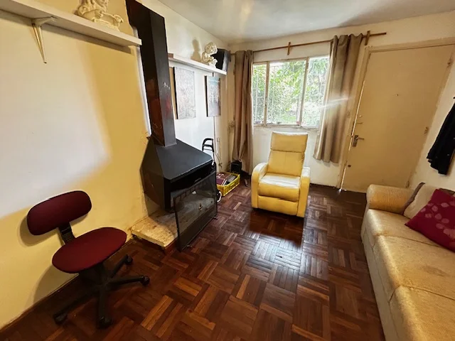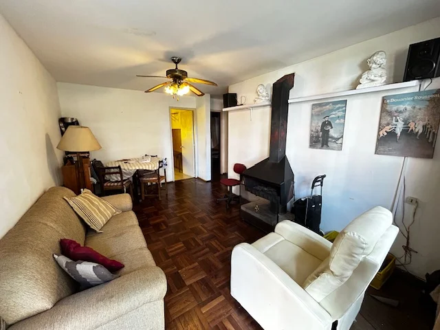Apartamento tipo casita en planta baja al frente, ubicado en predio cerrado perimetralmente. Living comedor con estufa a leña,