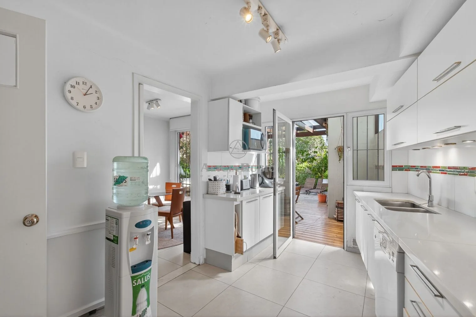 Cocina con comedor diario y doble mesada.