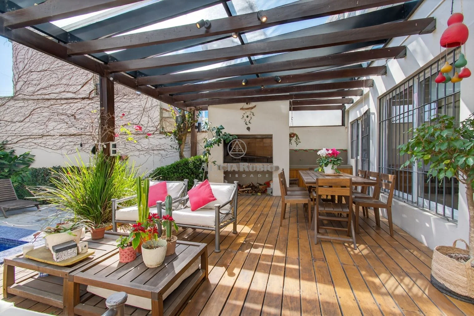 Barbacoa techada con vidrio y toldo automatizado,