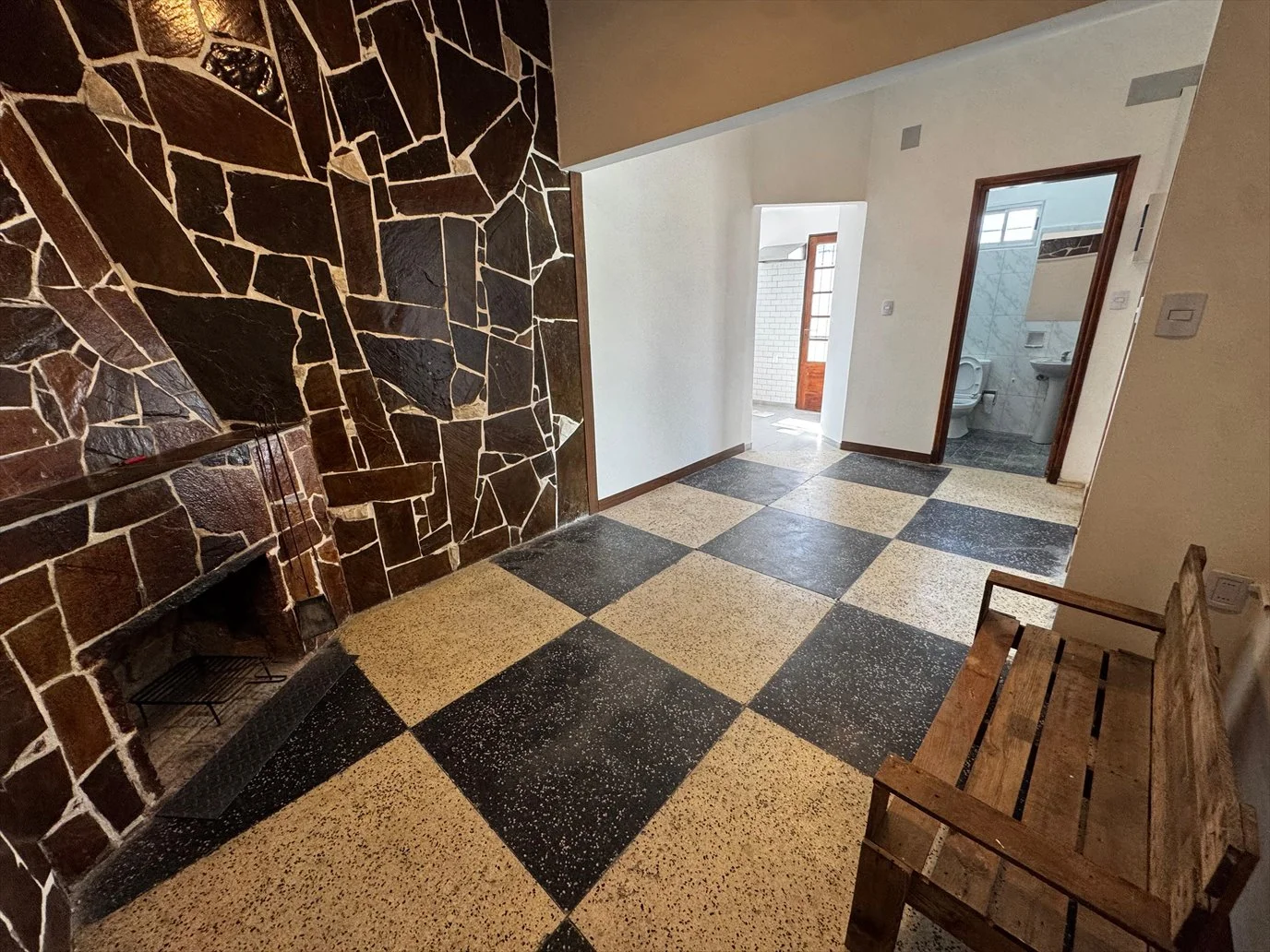 -Living comedor, bien distribuido, pisos monolíticos en buen estado de conservación, estufa a leña