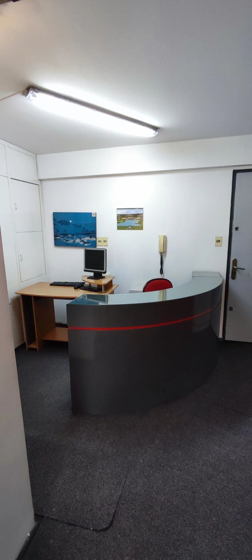 Apartamento actualmente para oficina. Estar o recepción, habitacion o privado, baño, kitchenette. Edificio con porteria.