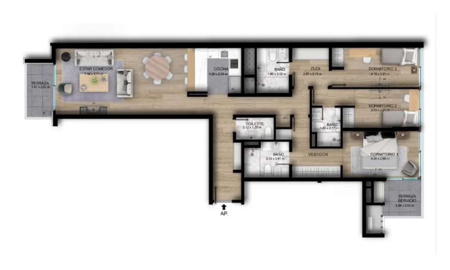 131.59m² internos · 9.5m² terraza
