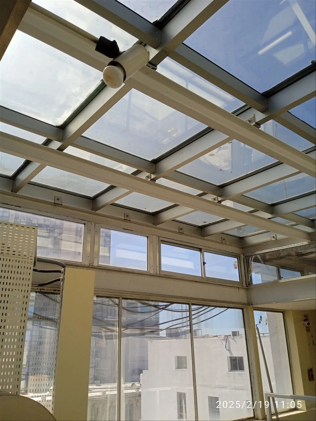 Desde la planta baja al quinto piso existe un espacio abierto, con un gran lucernario en la azotea, creando una