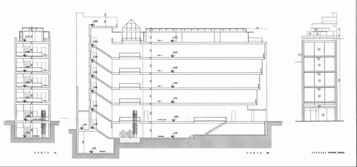 P.B ,con recepción, varias oficinas, baños, amplios ventanales en todas las plantas al frente hacia la Calle Sarandí.