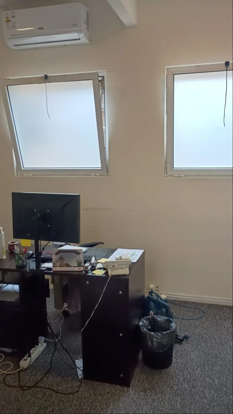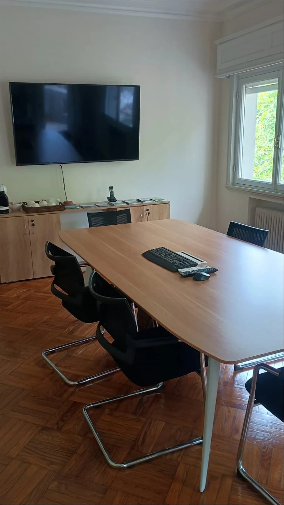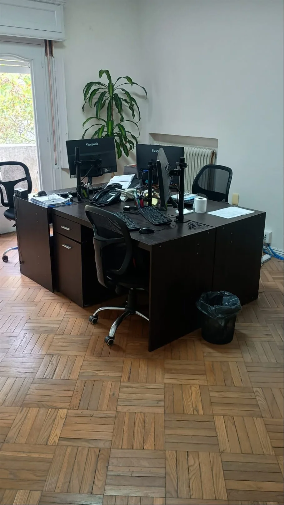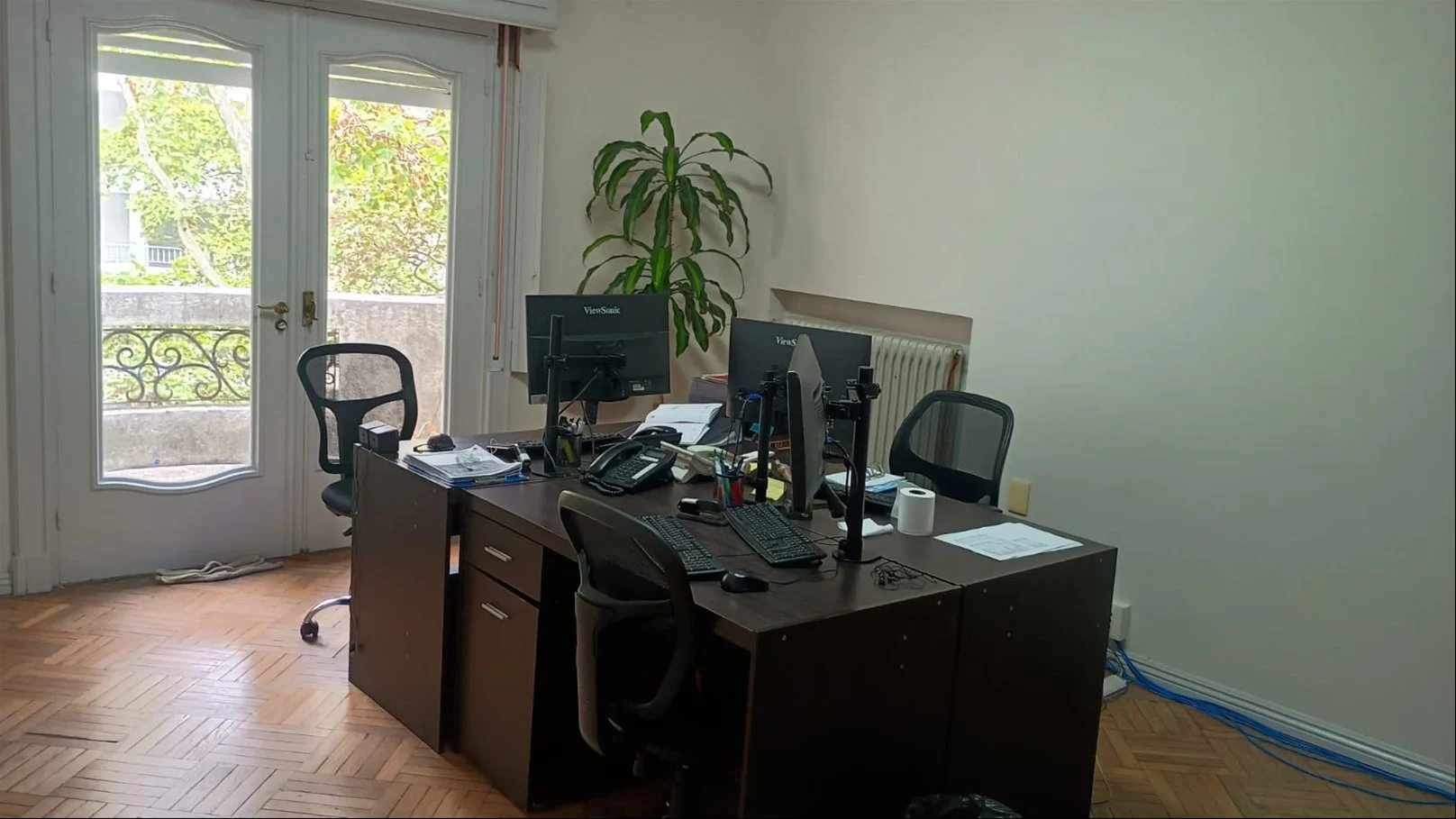 La unidad Sala de reuniones o amplio espacio de trabajo al frente con doble acceso y salida a balcón, 4 privados, uno con acceso directo y otro con lugar para varios espacios de trabajo y salida a segundo balcón, 2 baños a nuevo, cocina con placares bajo mesada con lugar para utilizar como comedor y varios placares en los pasillos o áreas comúnes. .