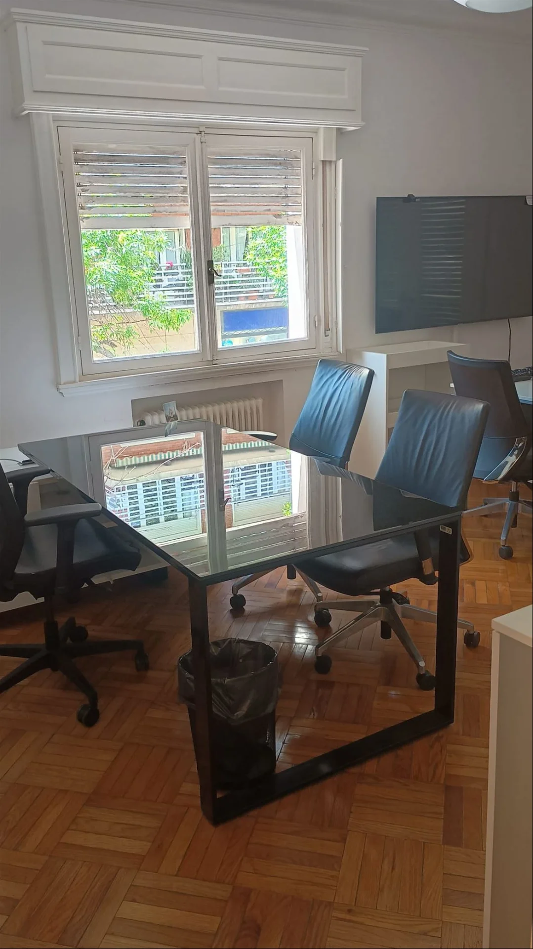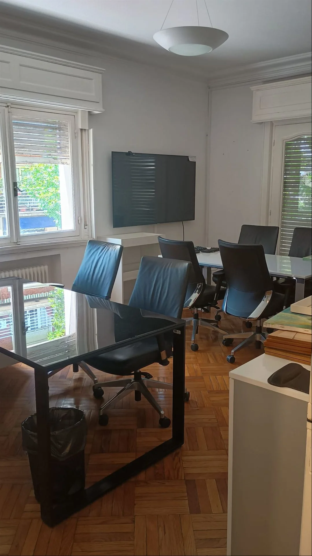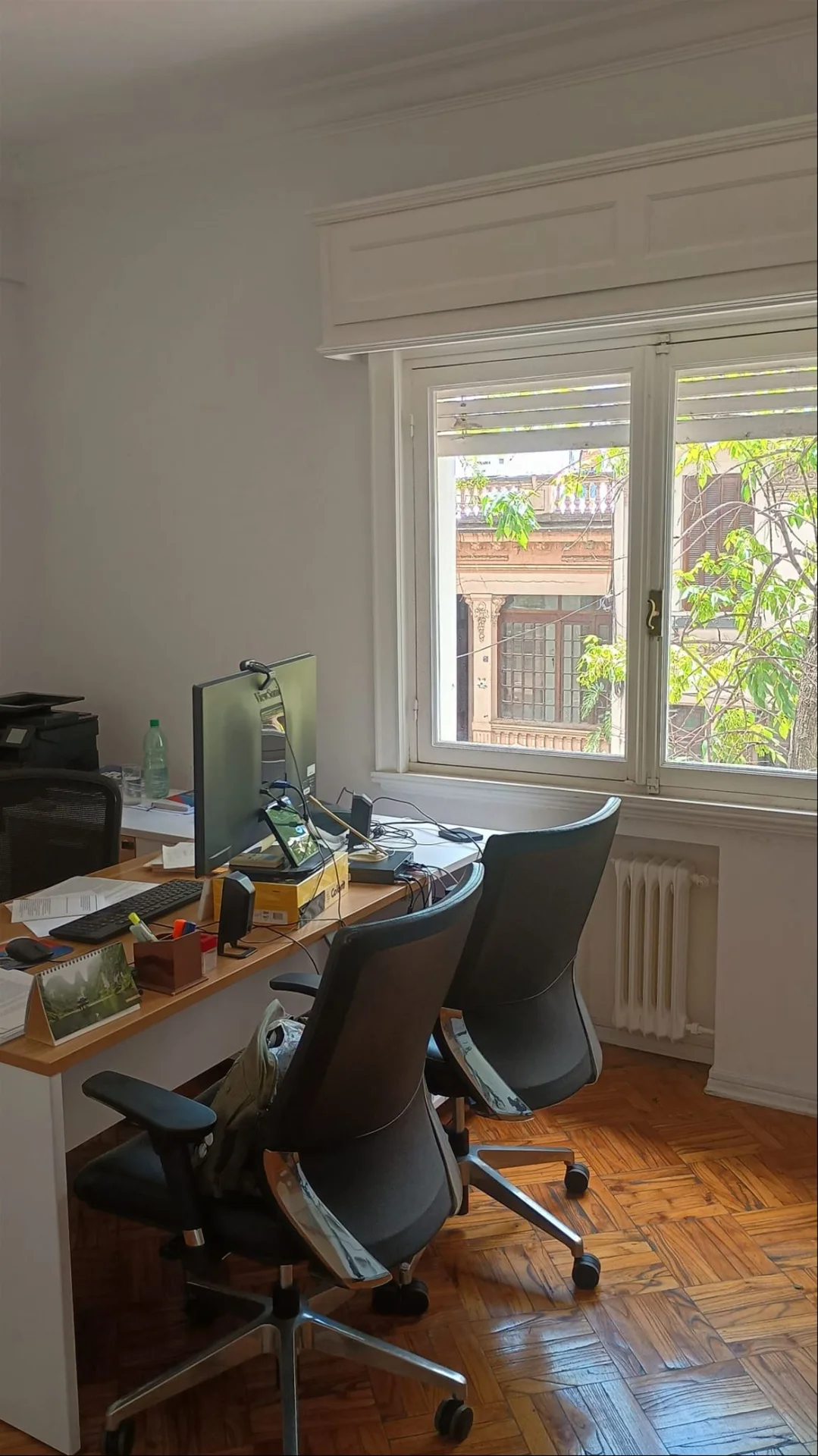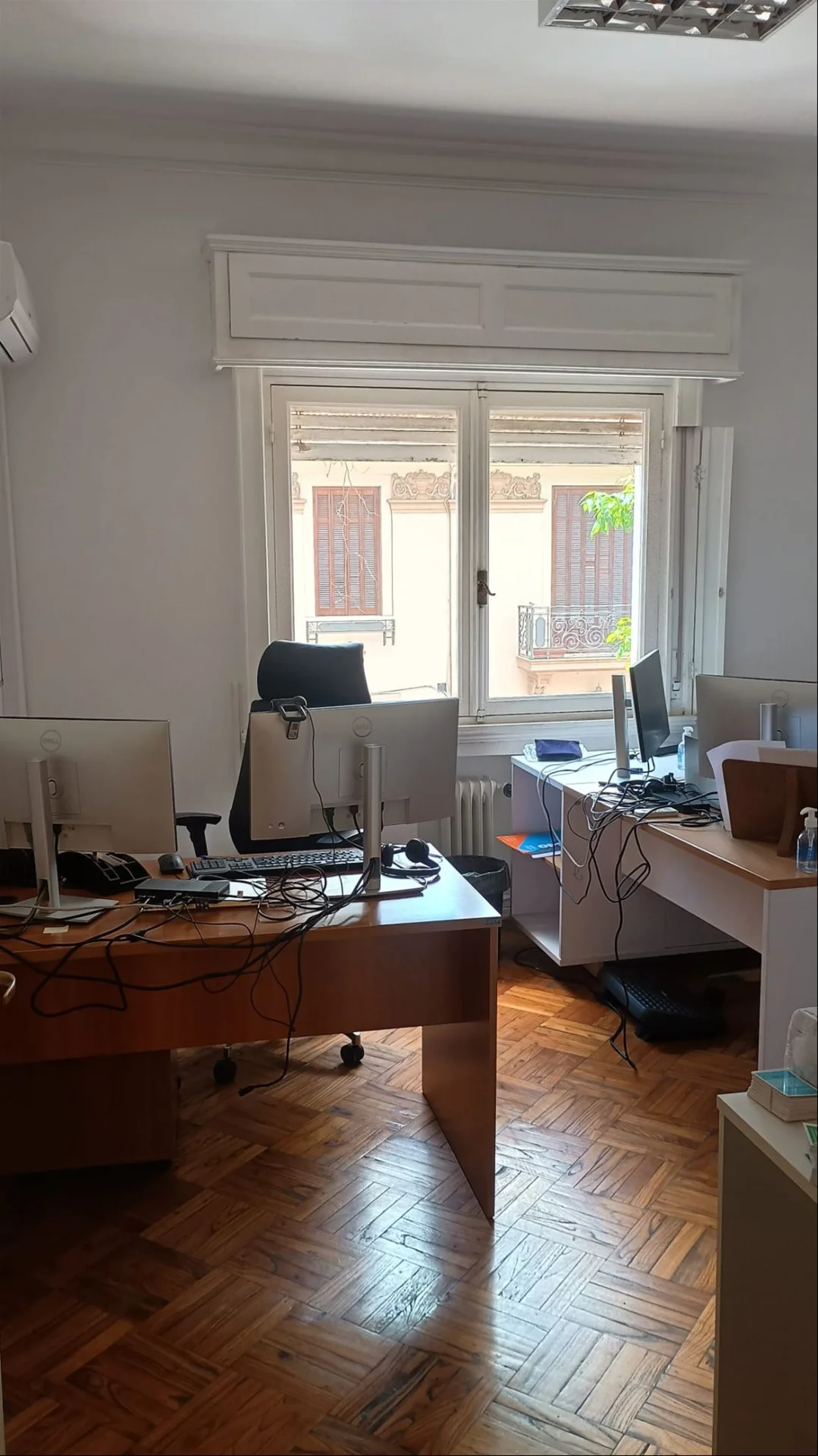 La oficina se ubica en un primer piso, cuenta con 10 privados de muy cómodas dimensiones todos, sala de reuniones, 4 baños reciclados a nuevo, cocina a nuevo, entrada principal a recepción, entrada directa a sala de reuniones y entrada de servicio. Posee dos amplios balcones al frente y 2 balcones más chicos al contra frente, profusión de placares en toda su extensión. Pisos de parquette original en excelente estado, eléctrica a nuevo, aire acondicionado en todos los ambientes y calefacción central por radiadores. Todas las ventanas y puertas ventanas de los privados cuentan con persiana de enrollar en perfecto estado. Actualmente cuenta con sala de servidores que se puede usar como tal o como oficina.