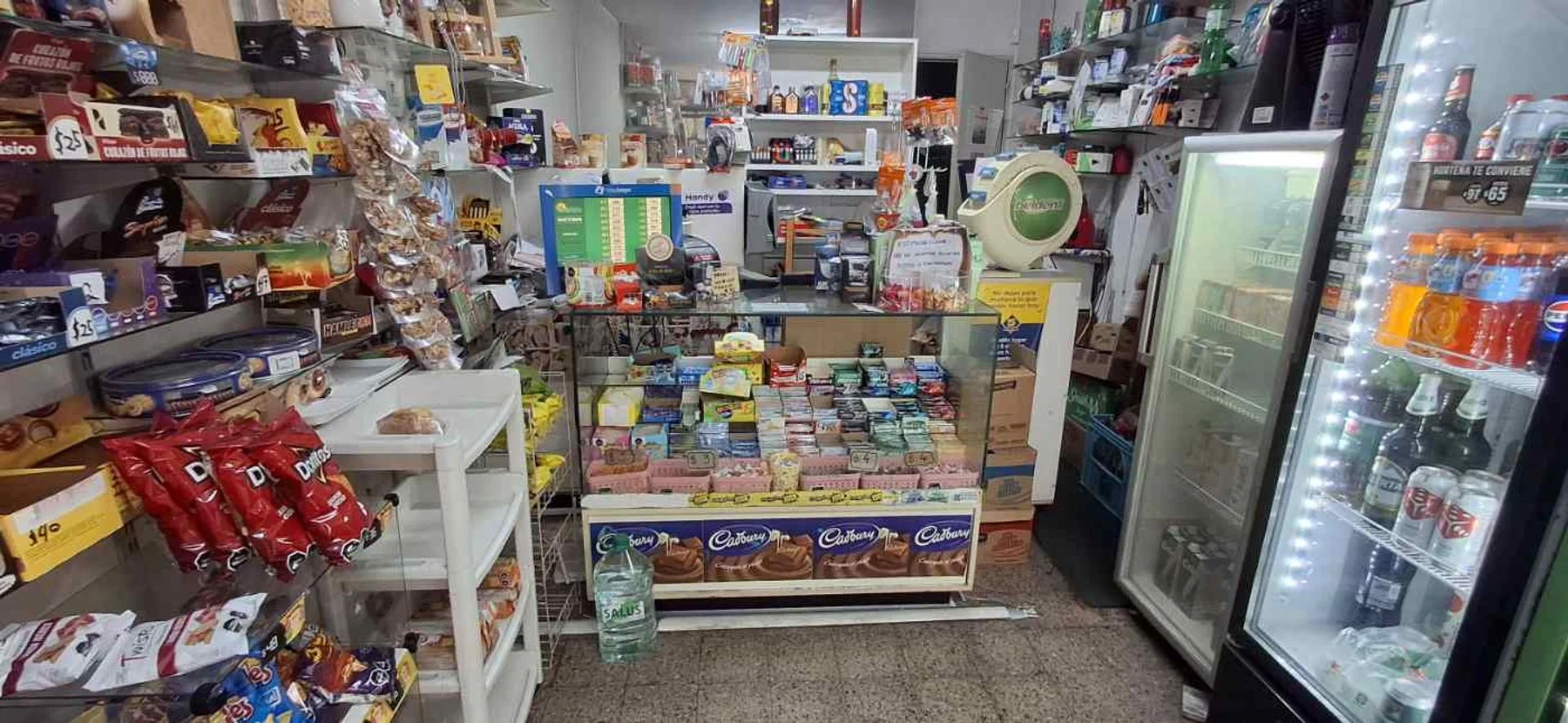 Tiene 3 heladeras para bebidas (una propia), mostrador y exhibidores.