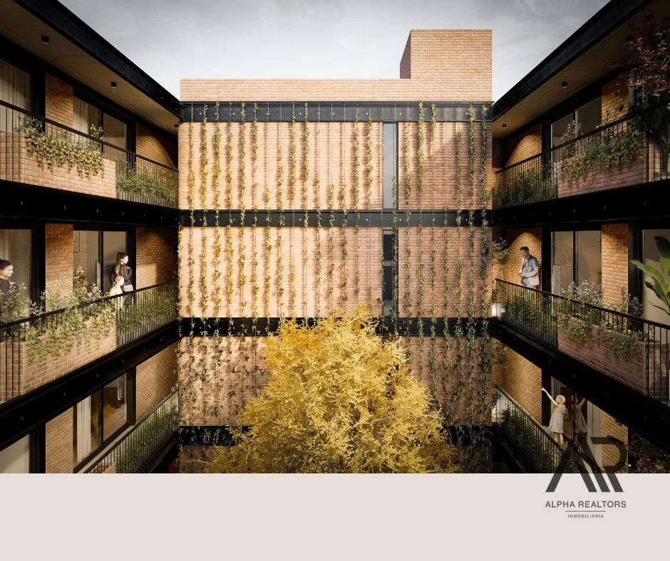 Espacios comunes atractivos: Parrilleros en la planta baja junto al patio central, un lugar perfecto para socializar o relajarse.