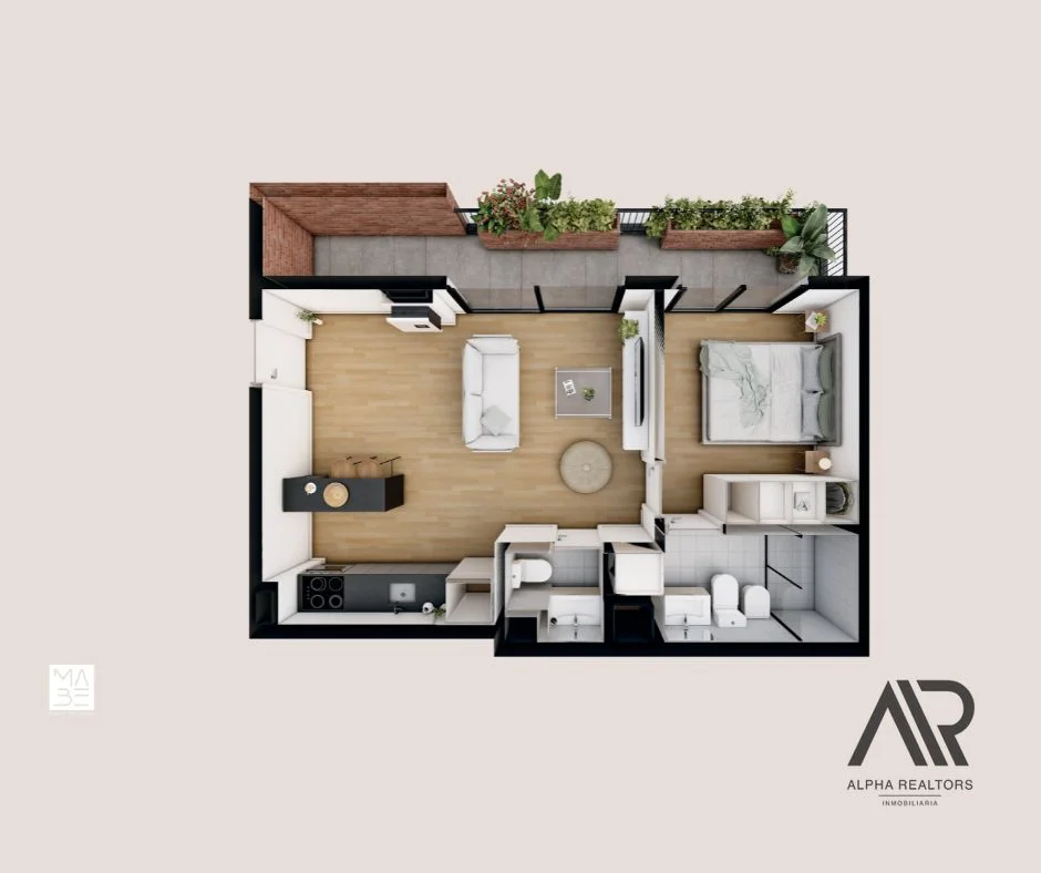 Este moderno inmueble, se encuentra en una de las zonas más deseadas de la ciudad, donde la comodidad se fusiona con la belleza en un entorno vibrante y acogedor. Este apartamento (302 o 304) con disposición interna, ofrece un diseño funcional que incluye1 dormitorio, 1 baño, 1 toilette, una cocina integrada y una encantadora terraza; con una superficie de 55,2 m², de los cuales, 43,92m² son interiores propios, terraza de 9,96m² y cuota Pallier de 1,30m². Además, hay disponibilidad de cochera cubierta (opcional por USD 20.000).
