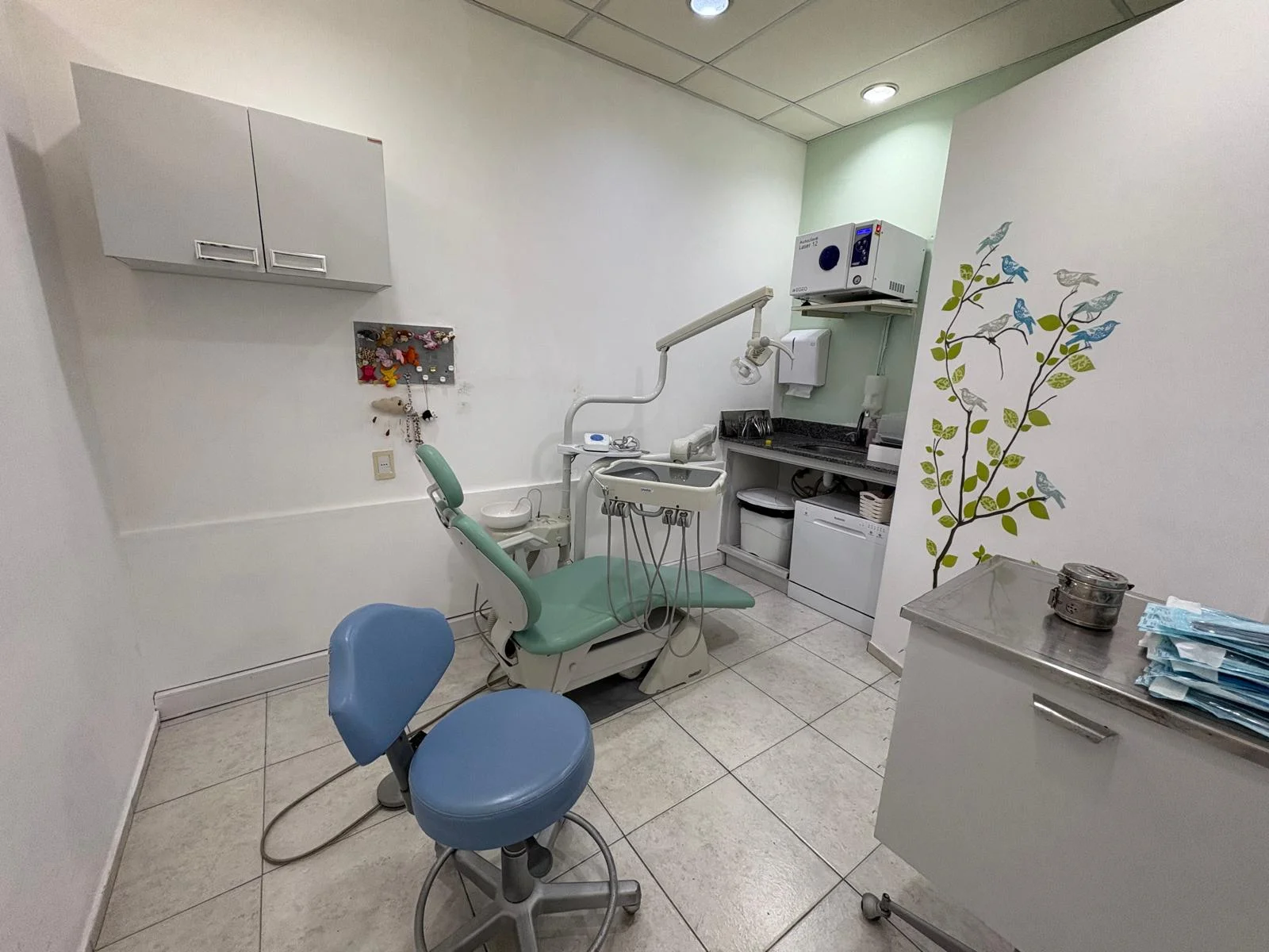 Incluye autoclave, cavitador eléctrico y neumático, cuatro turbinas y dos micromotores. También dispone de una oficina privada con mobiliario, frigobar y microondas.