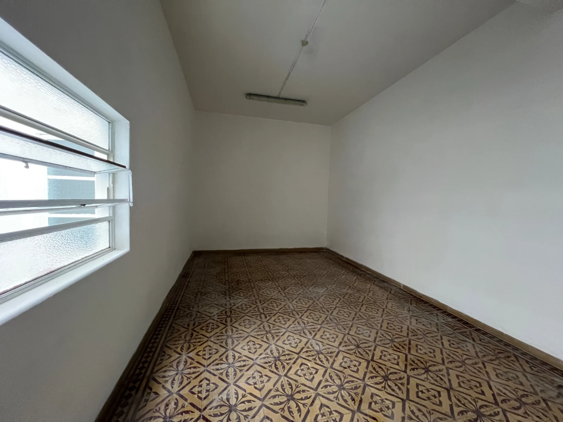 Entrada central a un amplio ambiente para atención al público, luego hacia el fondo, oficina privada o depósito. Baño, patio y cocina.
