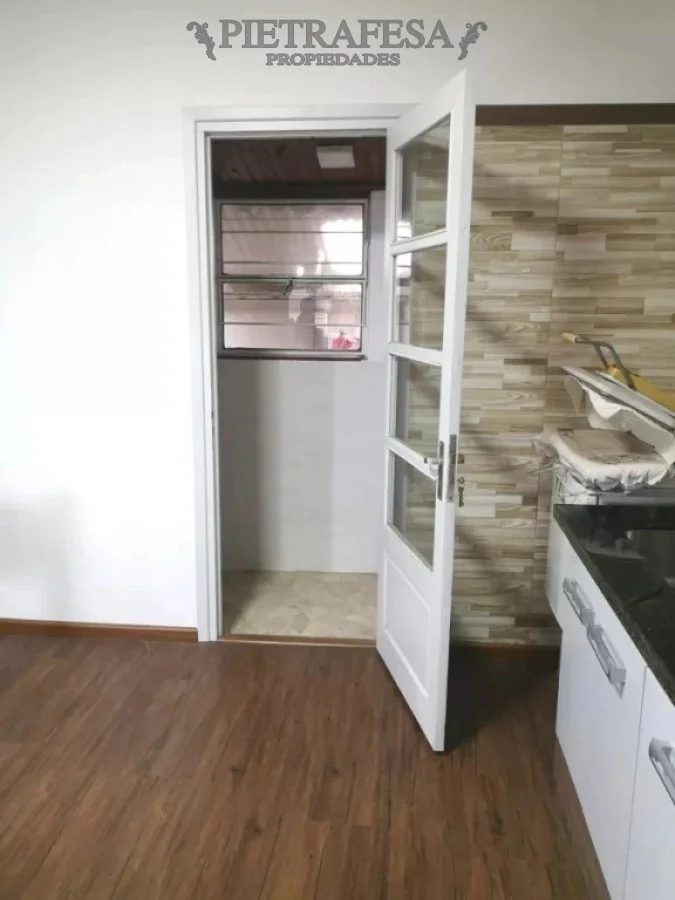 Planta alta: 2 habitaciones amplias, una al frente con ventanal en aluminio, desde la segunda habitación se accede a baño y cocina pequeños con ventanas al patio de la planta intermedia.