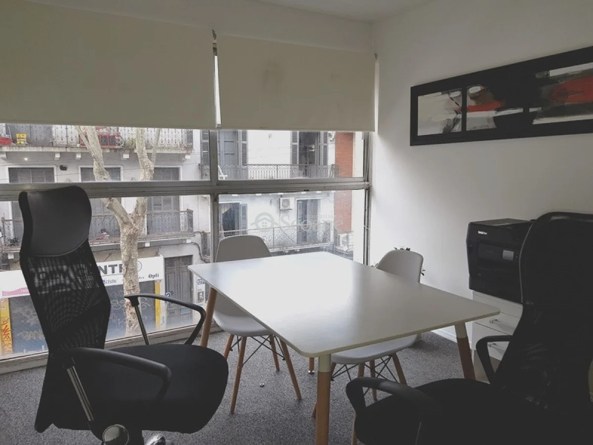 Excelente opción al frente, orientación oeste, soleada, impecable. 3 oficinas definidas, cada una con su cerramiento y puerta, piso de moquette, baño. Gran ventanal de aluminio. Portería de 8 a 20:30 hs.