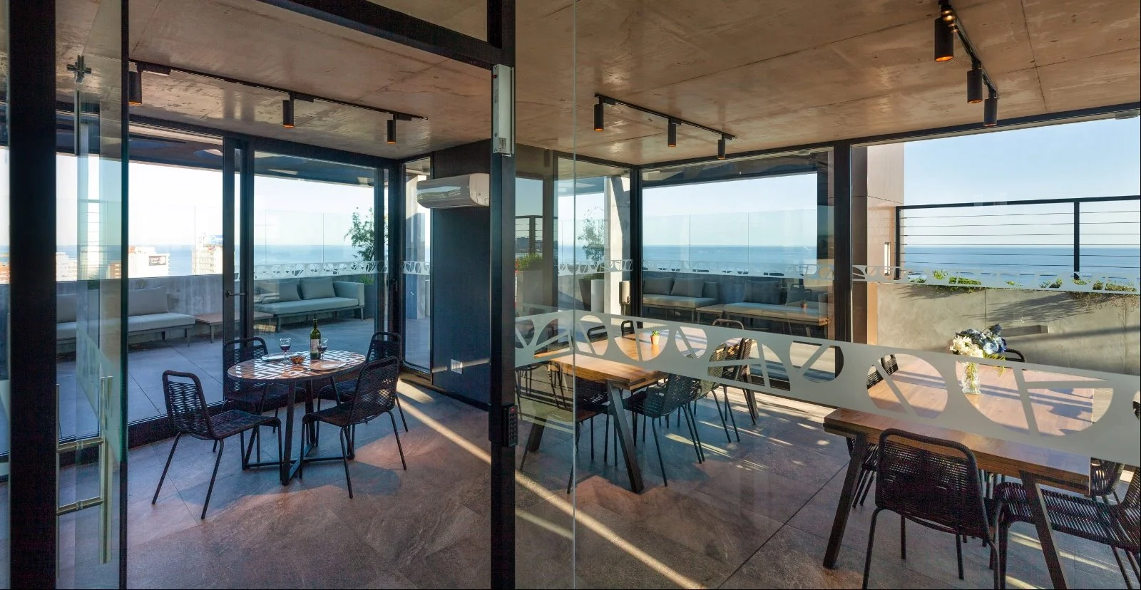 * PISCINA CLIMATIZADA A NIVEL DE LA AZOTEA CON VISTA PANORAMICA AL MAR