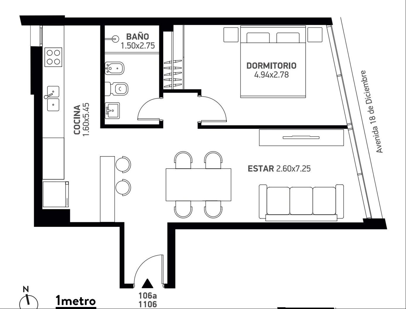 VENTA UNIDAD 1 DORMITORIO EN PISO CON FRENTE A 18 DE DICIEMBRE