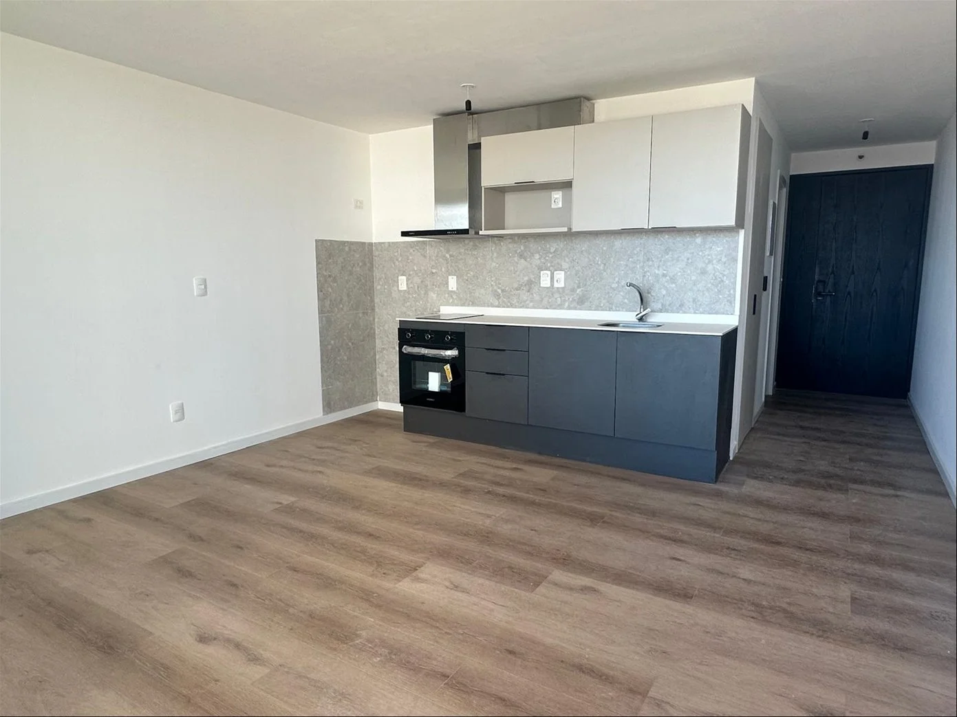 Cocina integrada cuenta con anafe, horno y muebles bajo y sobre mesada.