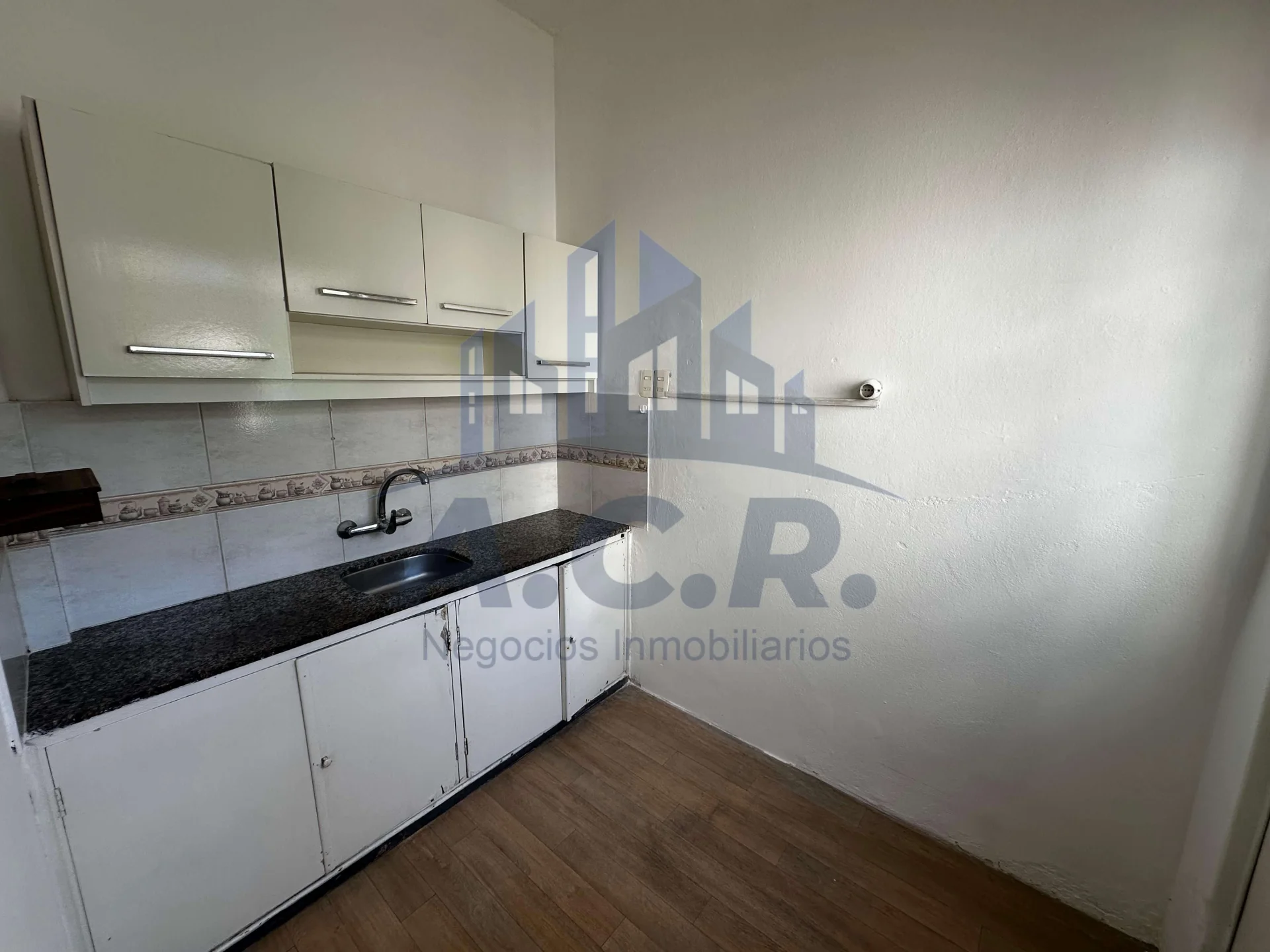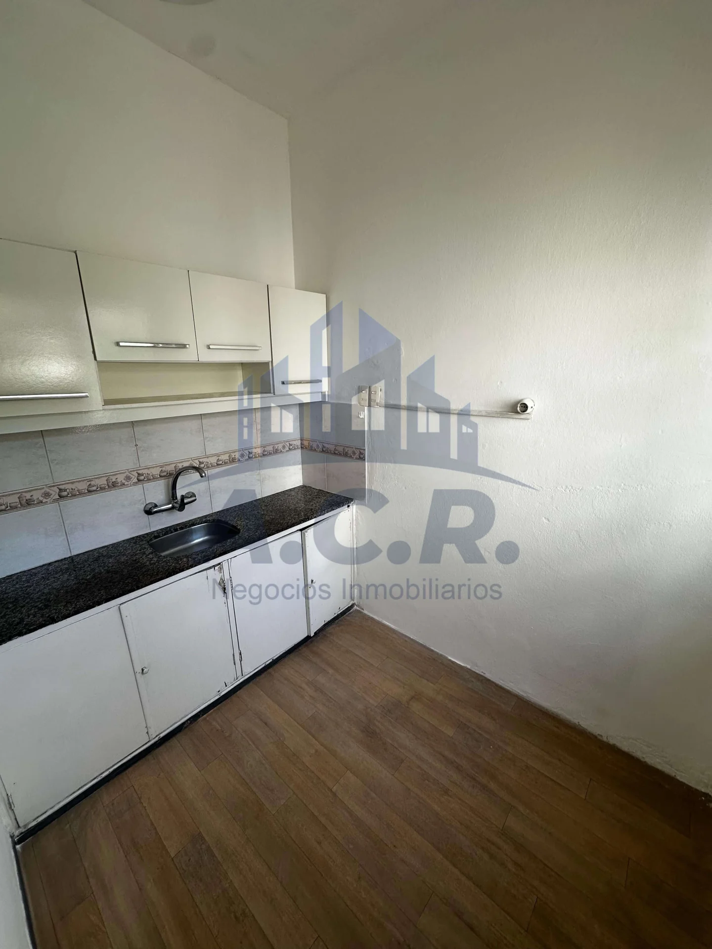 Cocina tradicional definida, en excelente estado, con placares aéreos y bajo mesada, mezcladora de agua caliente y fría.