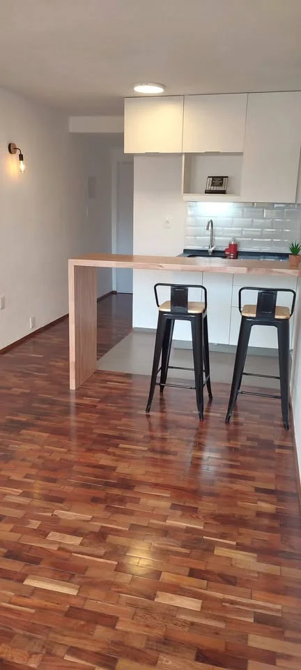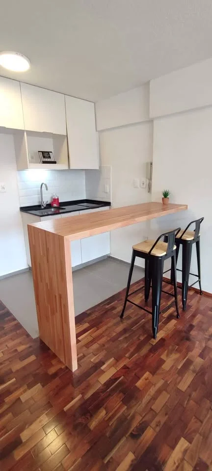La unidad fue reciclada recientemente, con muy buenas terminaciones, materiales modernos y un diseño que aprovecha cada metro. La iluminación es realmente destacable: las aberturas al frente permiten que ingrese luz natural durante buena parte del día, y la ventilación es fluida y fresca, algo clave en espacios de menor metraje.