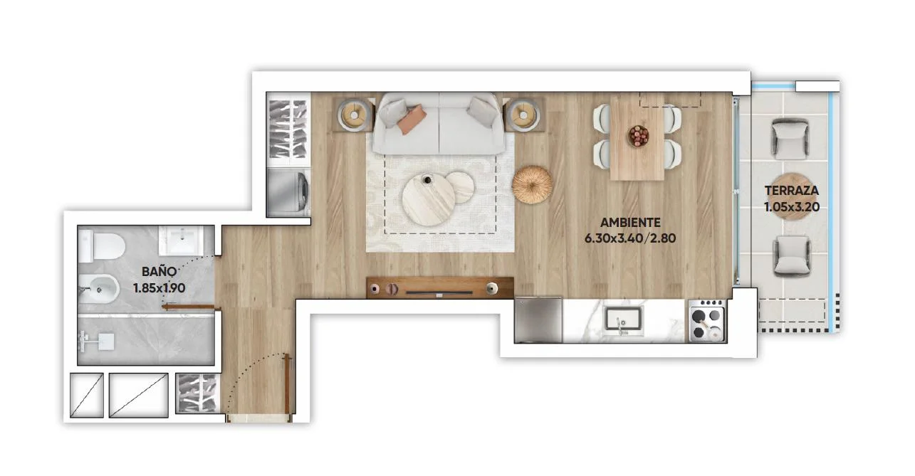 Apartamento monoambiente con Balcón - Entrega: Julio 2026