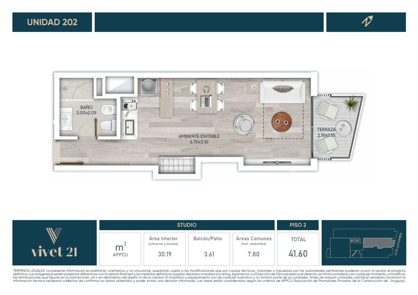 Este monoambiente ofrece una propuesta moderna y funcional, pensada para el estilo de vida actual. Ambientes versátiles, amplia iluminación y ventilación natural, y una terraza protagonista que integra interior y exterior para disfrutar al máximo.