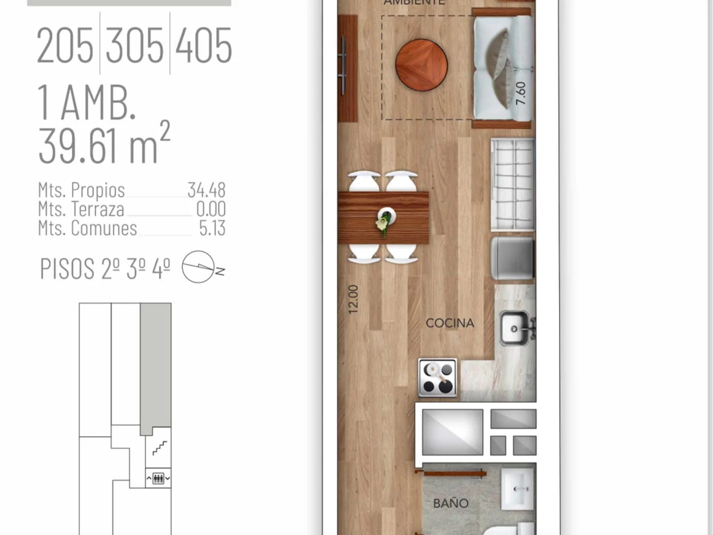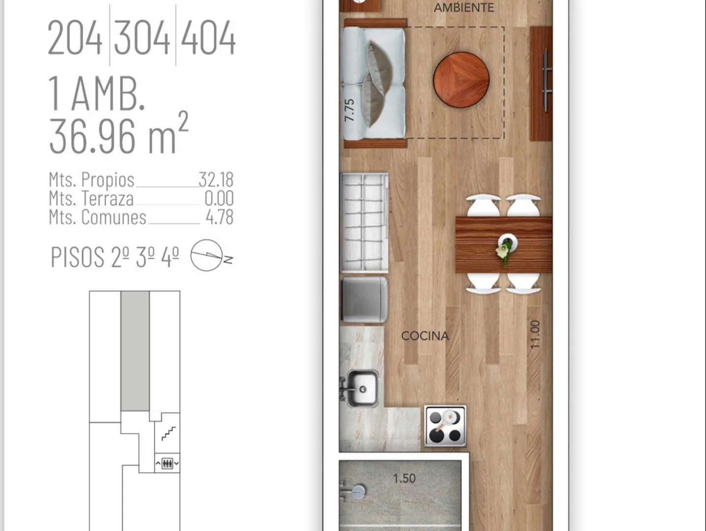 El proyecto, cuenta con 4 pisos de apartamentos de Monoambiente a 1 dormitorios.