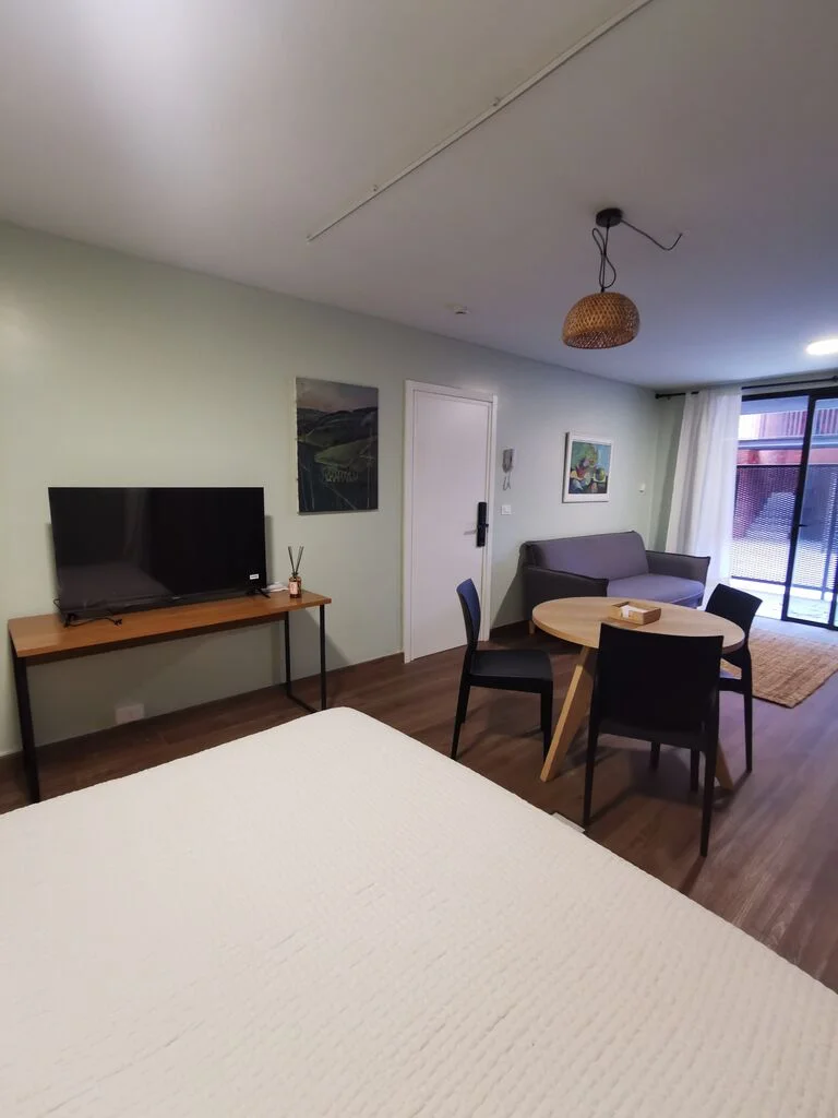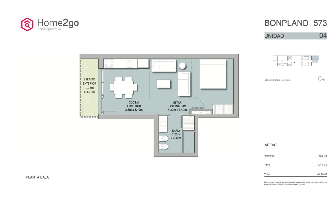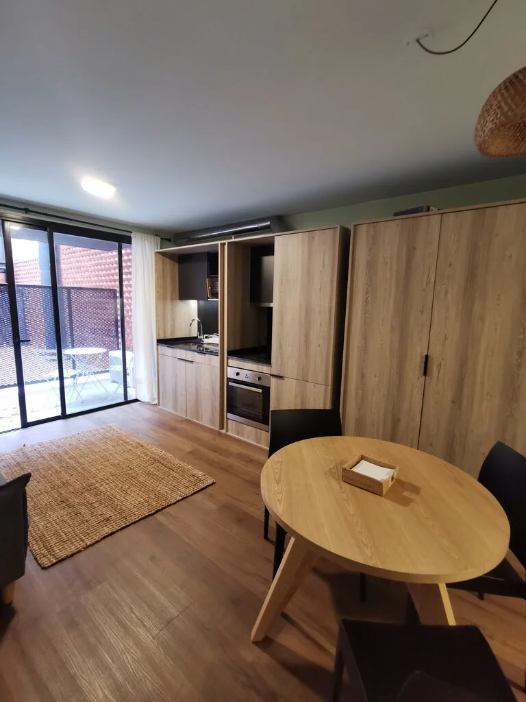 Monoambiente amplio, planta baja con patio, completamente equipado! Gastos 200usd (incluye gastos comunes, internet y tributos) Hay garaje disponible con costo aparte.
