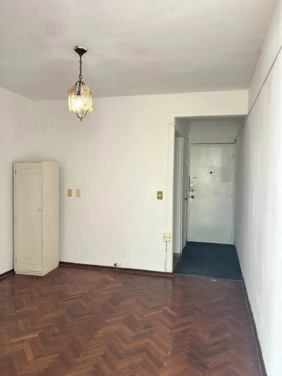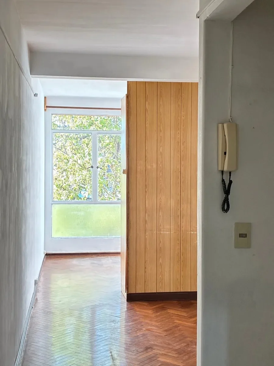 Se alquila monoambiente muy luminoso al frente sobre Av. Uruguay. La unidad cuenta con 30 m², pisos de parquet en excelente estado, amplio placard para almacenamiento, kitchenette definida y baño completo.