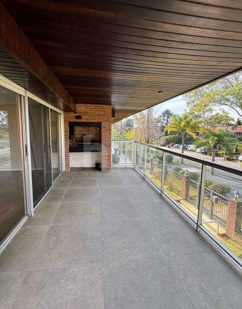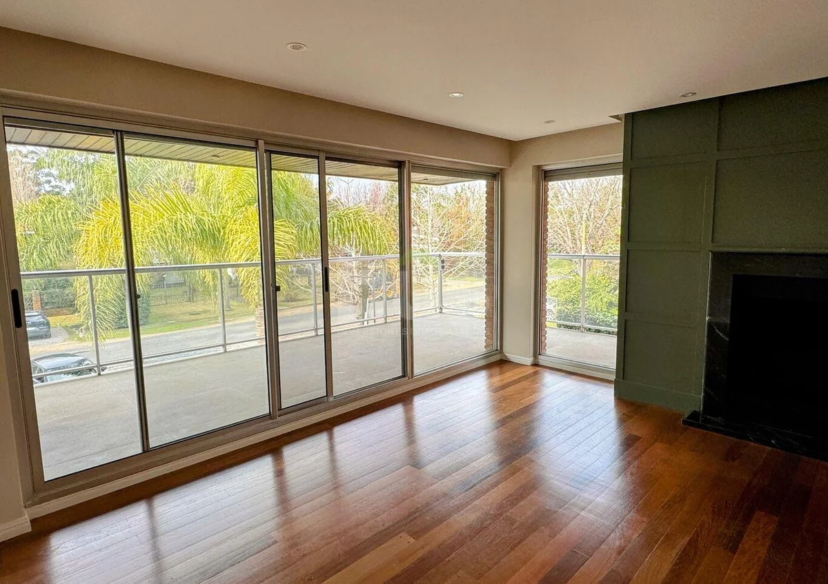 Hall de entrada, amplio living-comedor con estufa a leña, salida a terraza con parrillero, estar semi integrado con salida a terraza. Baño social.