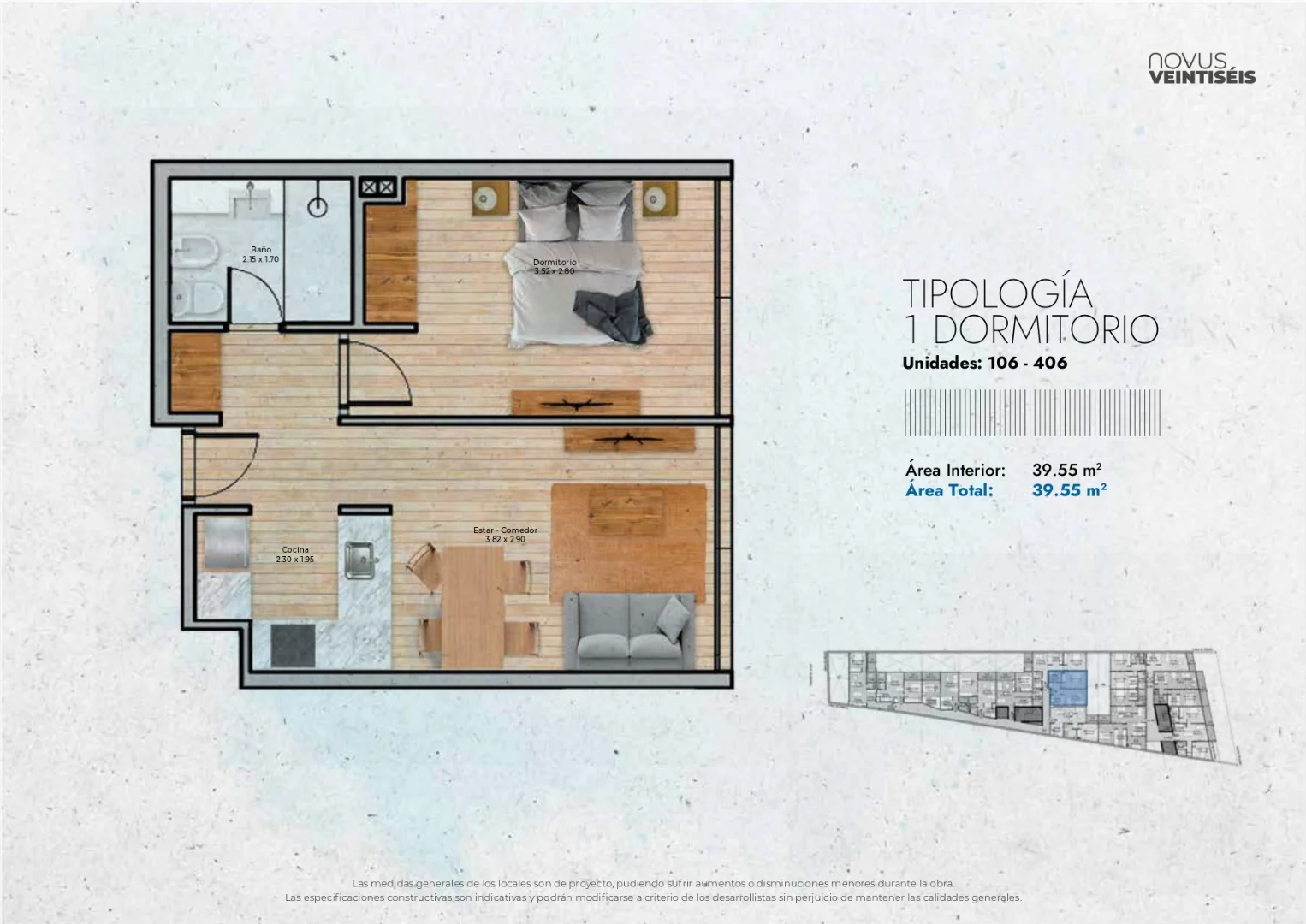 En una de las zonas más atractivas y dinámicas de la ciudad, ofrece a la venta apartamentos de 1 y 2 dormitorios. Terrazas balcón con OR. Norte.