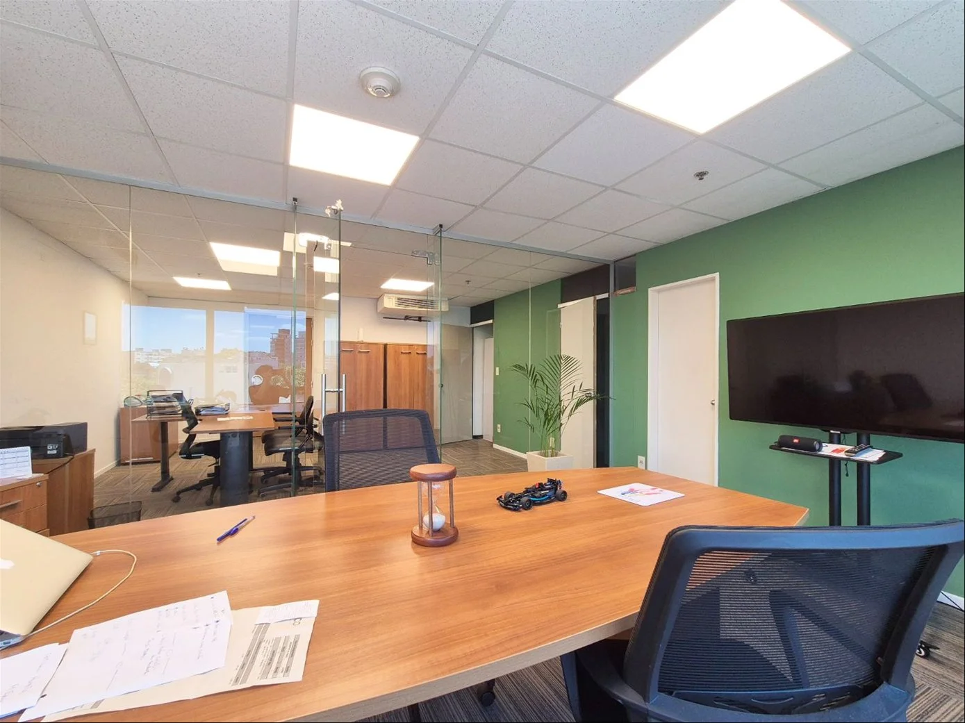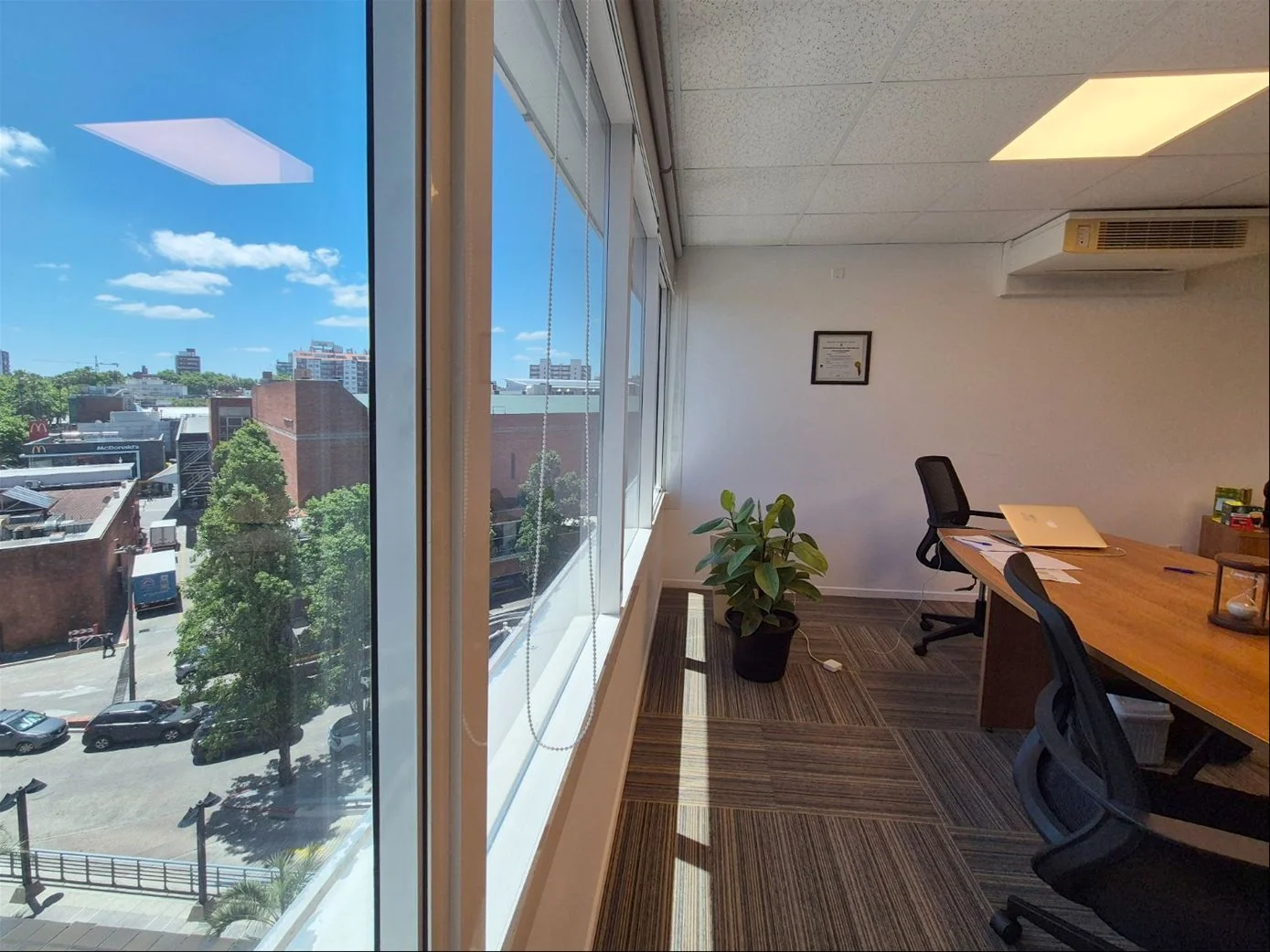 La oficina está compuesta por: - Open Office - Sala de Reuniones con baño - Kitchenette y baño - Espacio de Servidores o depósito.