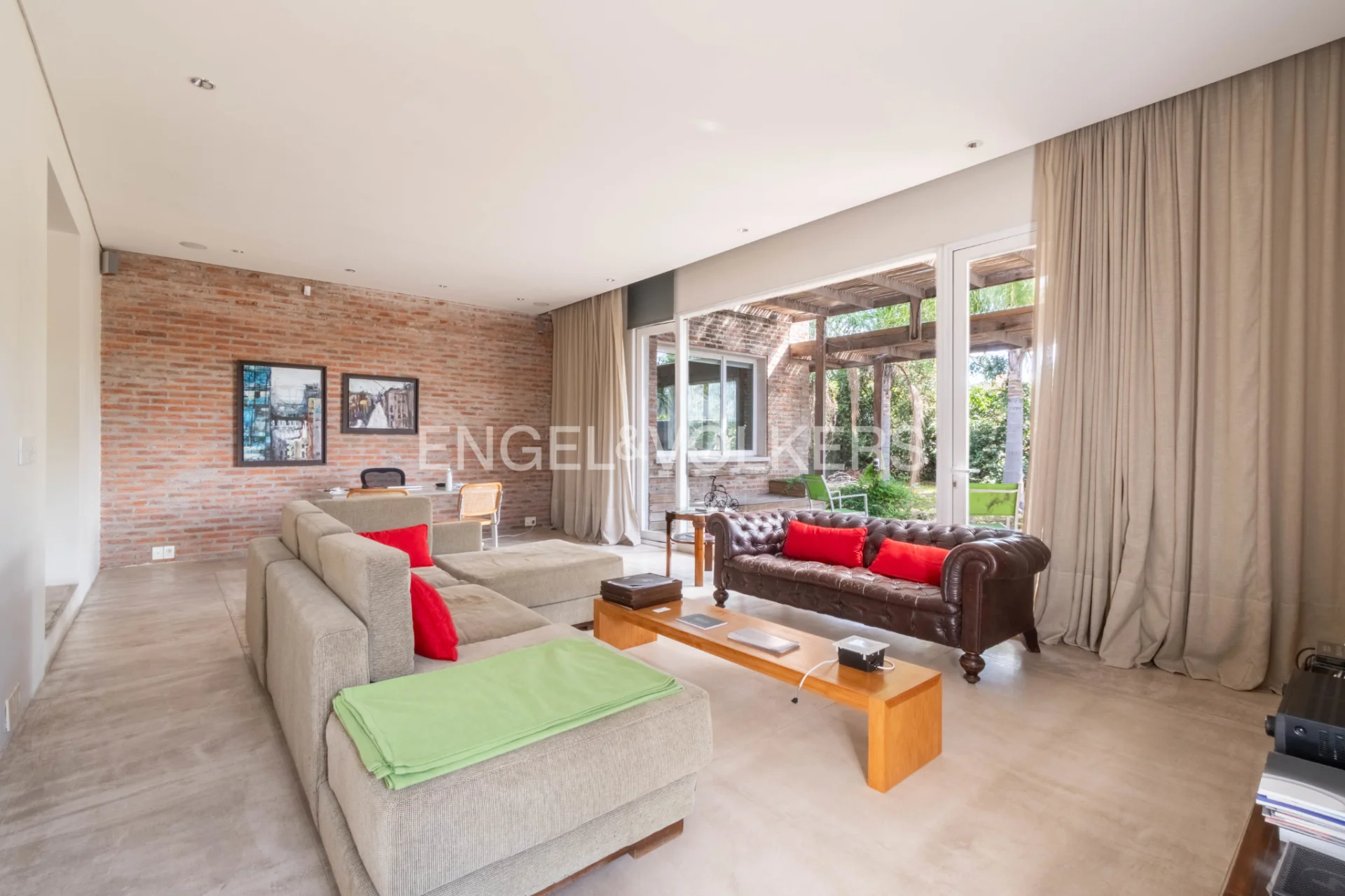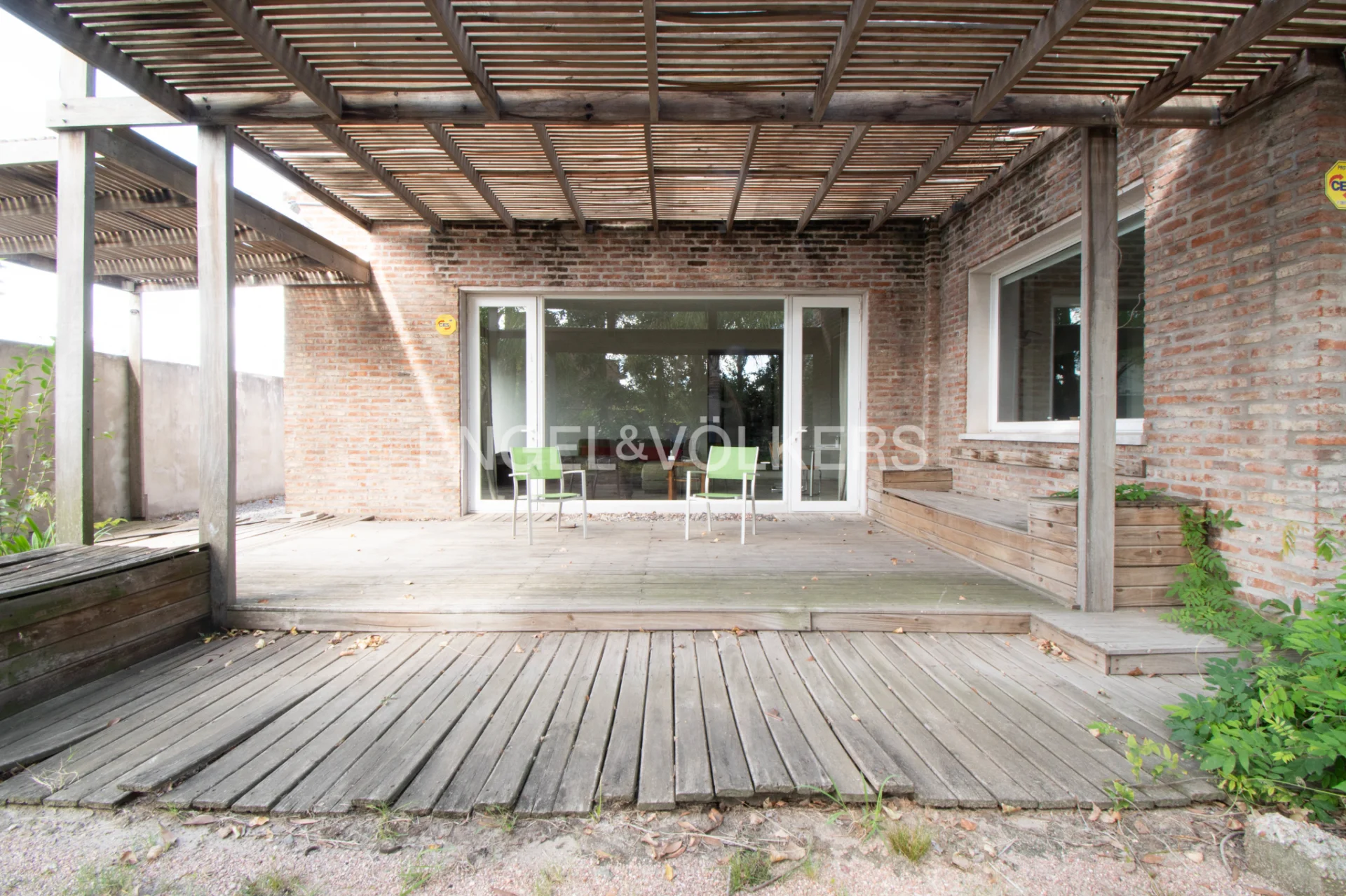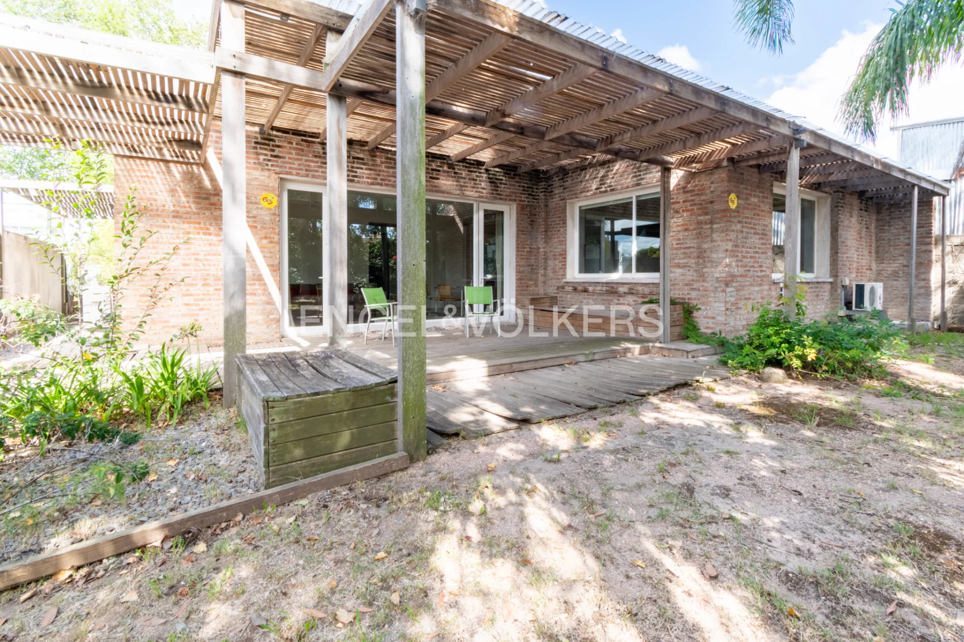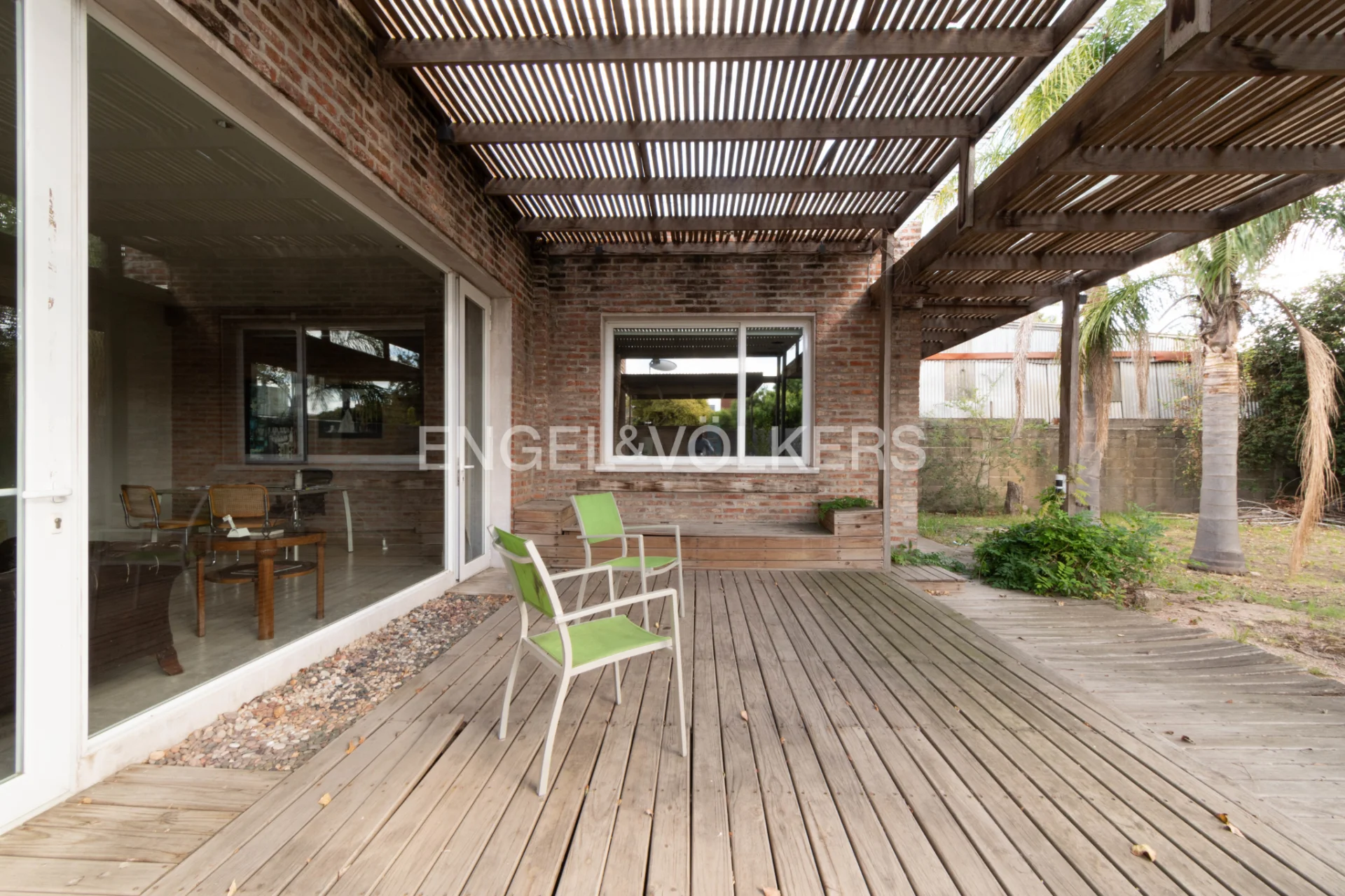 La planta ofrece un solo escalón en el acceso al local de mayor área orientado al Oeste, con una salida al exterior a la pérgola de madera (alero) con deck de madera de gran calidez estética.