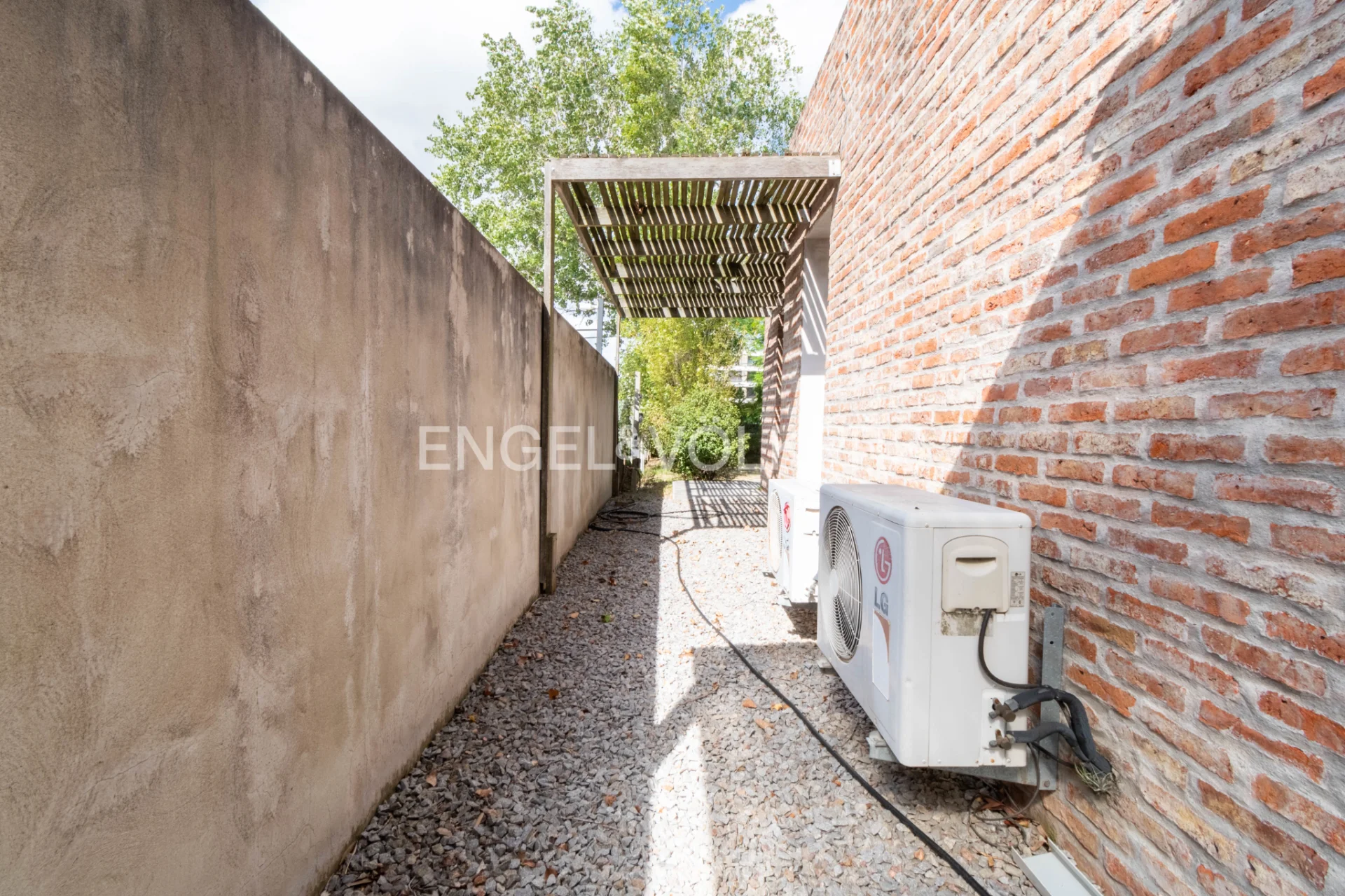 El tratamiento de los materiales de terminación es muy moderno y minimalista. Contando la casa con muro doble de ladrillo a la vista con junta de toma enrasada tanto al exterior como al interior. Los pavimentos son de microcemento alisado y los cielorrasos horizontales de yeso bajo losa de hormigón. El edificio cuenta con azotea plana perfectamente empleable para un desarrollo hacia un nivel superior. Las aberturas de aluminio pintado son de máxima calidad con vidrios DVH y buen nivel de aislación termo acústica. Las ventanas piso techo cuentan con sistemas de cortinas interiores controladas demóticamente para su accionar motorizado remoto.