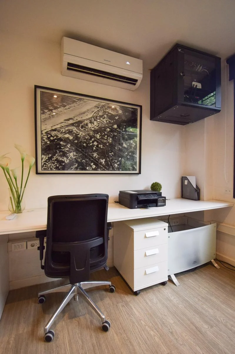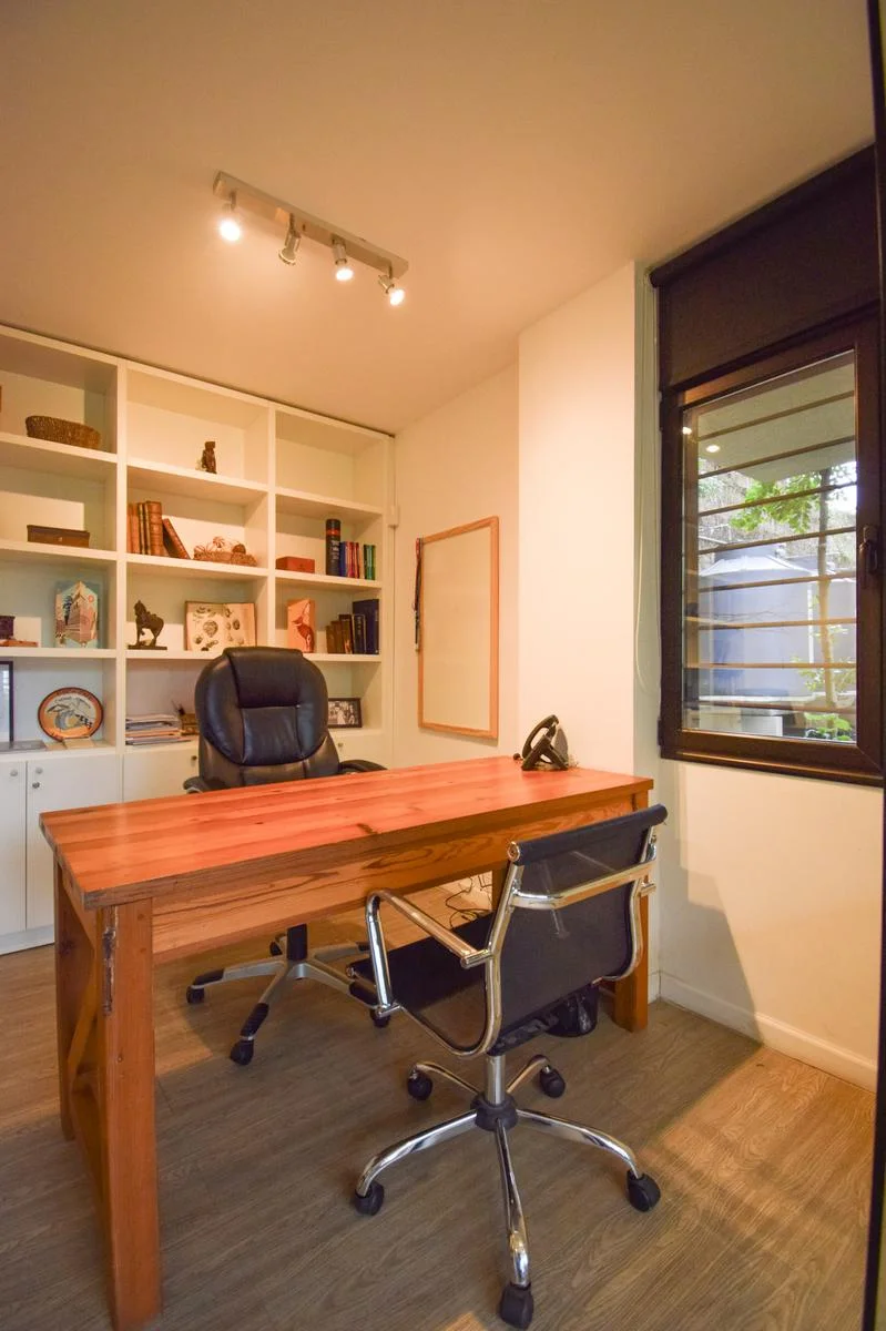 Oficina B cuenta con un amplio espacio integrado con biblioteca empotrada (sin muebles)