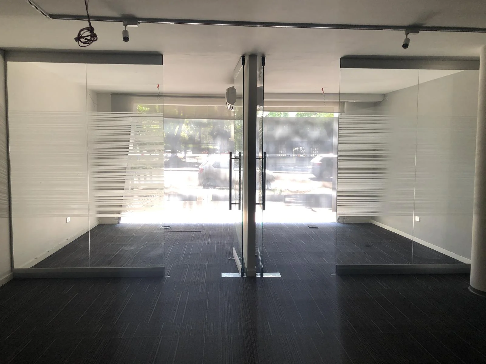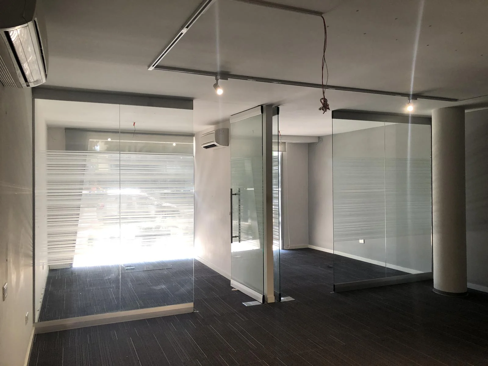 2 oficinas con cerramiento de vidrio al frente.
