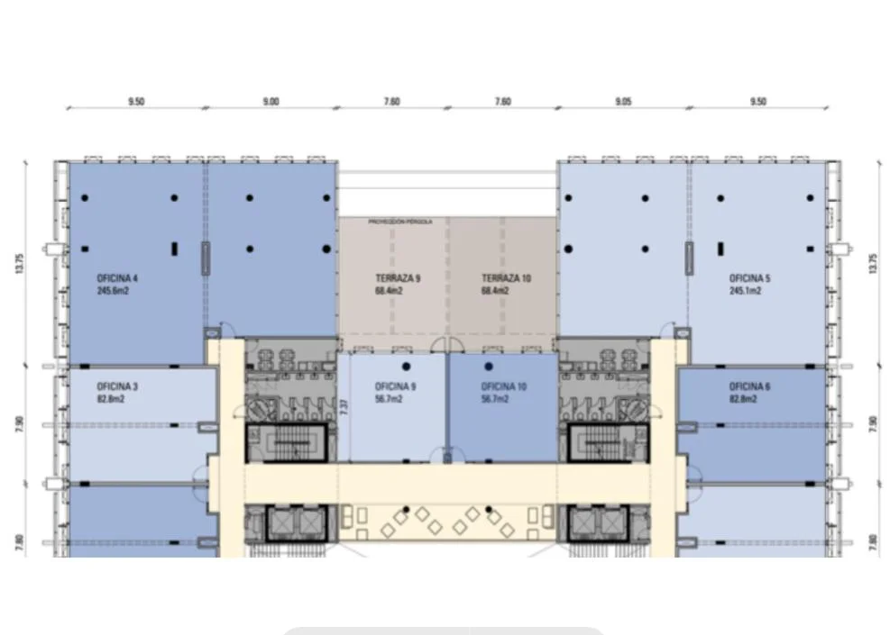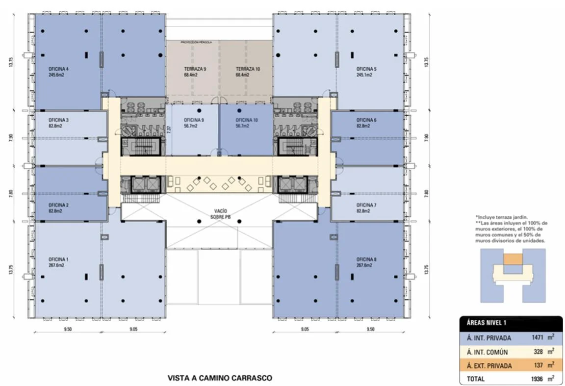 Oficina 9 , block B , piso 1. 57 metros cuadrados mas 68 mts.cuadrados de terraza propios mas cochera (nro.47) de 13 metros cuadrados.