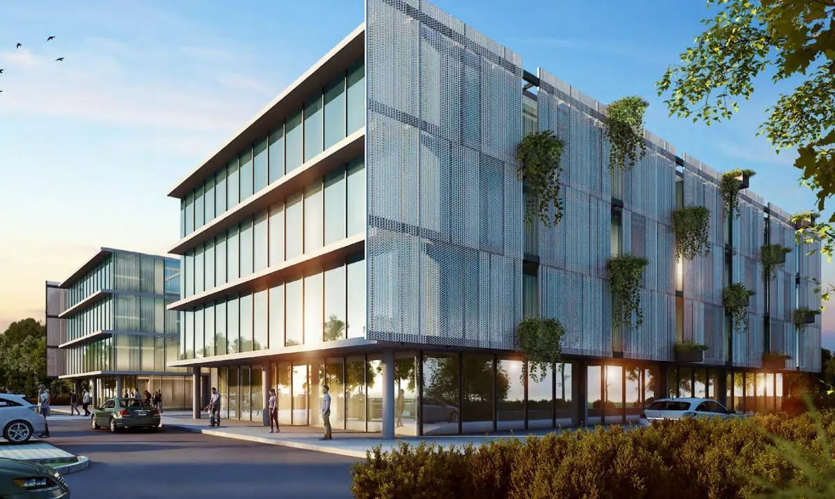 Proyecto de oficinas de diseño moderno, dos torres conectadas. Situadas en la entrada principal de Barrio Parques.
