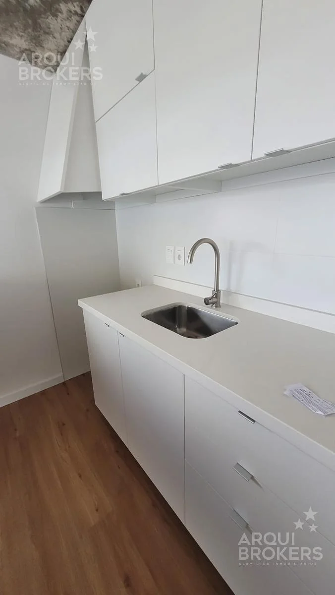 Oficina con kitchenette integrada con placares sobre y bajo mesada y 1 baño.