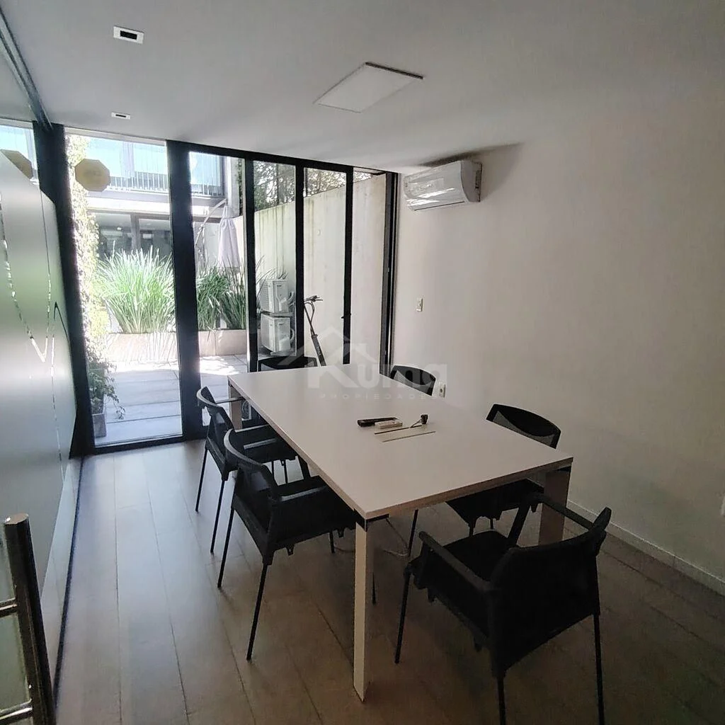 Tiene 60m2 totales con 3 ambientes de trabajo de los cuales 2 son privados vidriados + cocina + baño + patio.