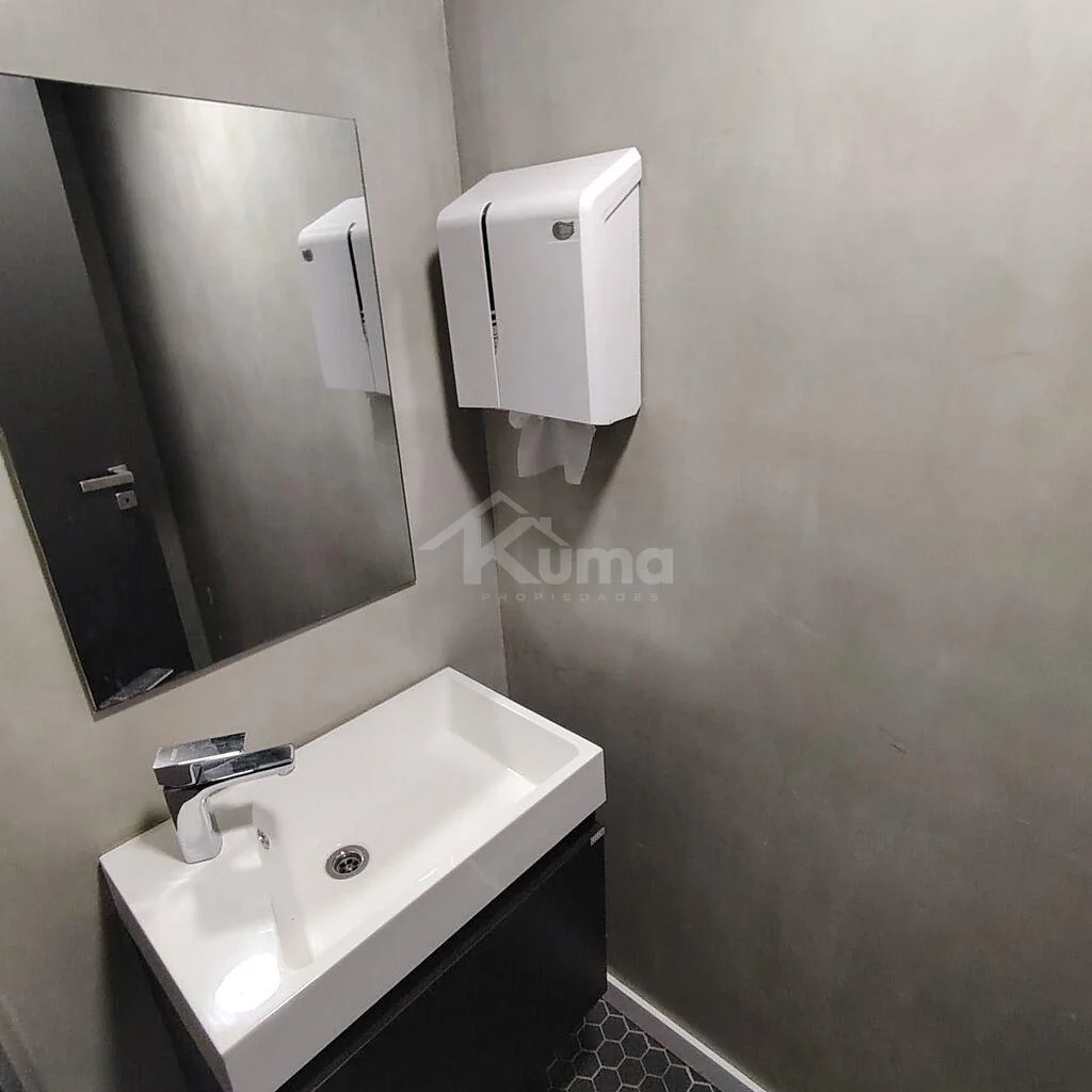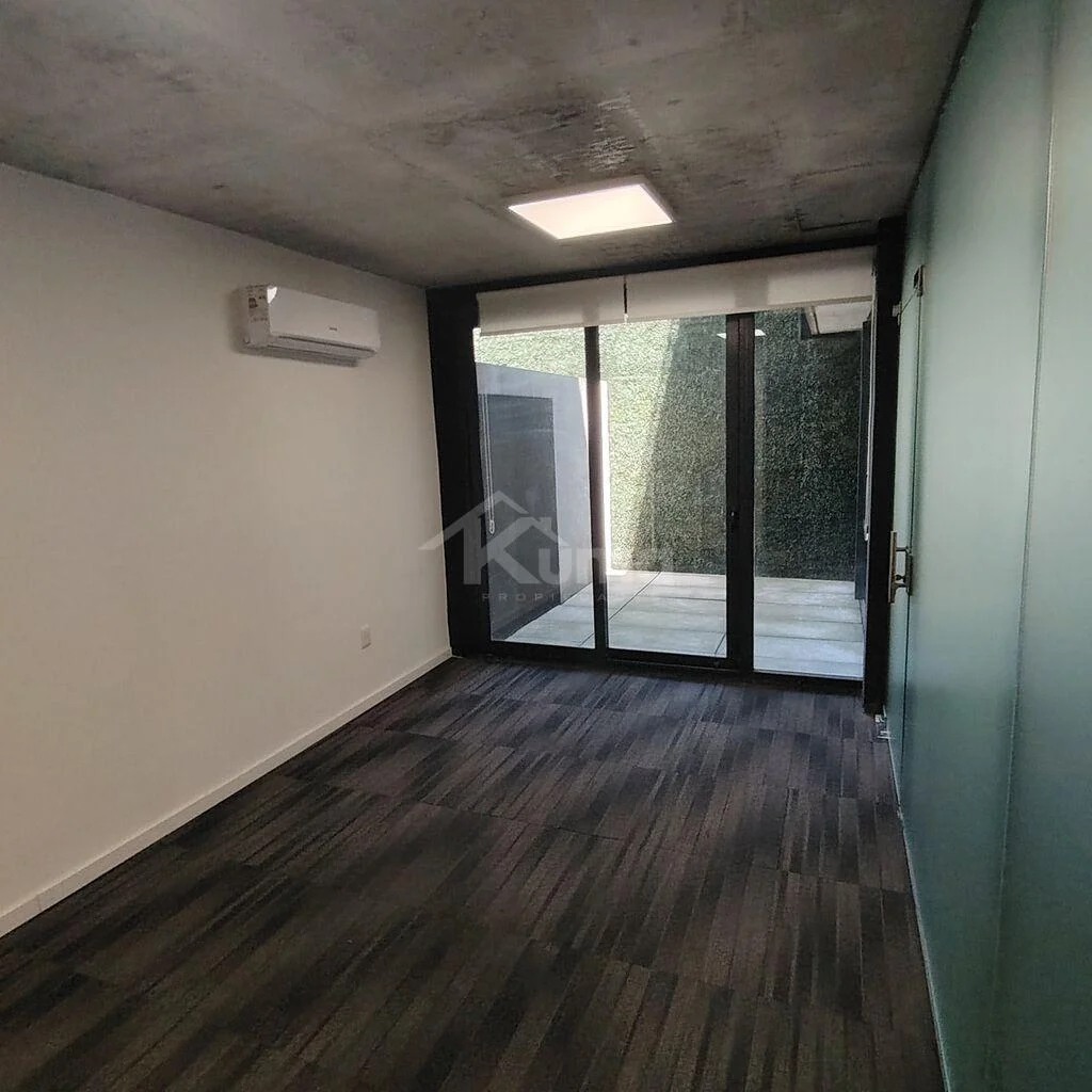 Tiene 60m2 totales con 3 ambientes de trabajo de los cuales 2 son privados vidriados + cocina + baño + patio.