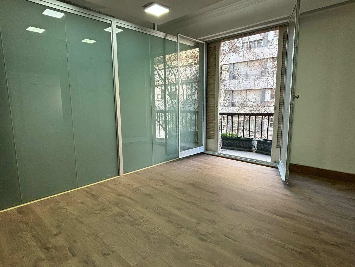 El apartamento cuenta con una recepción para personal de ingreso a los escritorios y tres amplias salas para recibo. Dispone de cinco espaciosos escritorios con hermosos pisos de roble y amplios ventanales. Además, tiene tres baños y una cocina reciclados con muy buen gusto, así como excelentes placares.