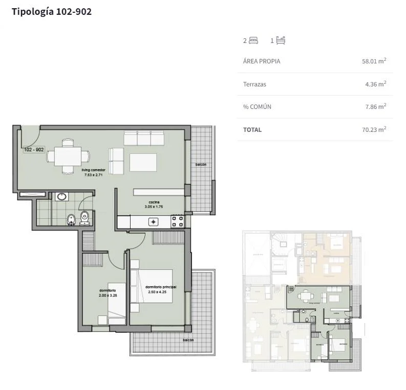 Este increíble apartamento cuenta con 62.5m² de uso exclusivo para su propietario.