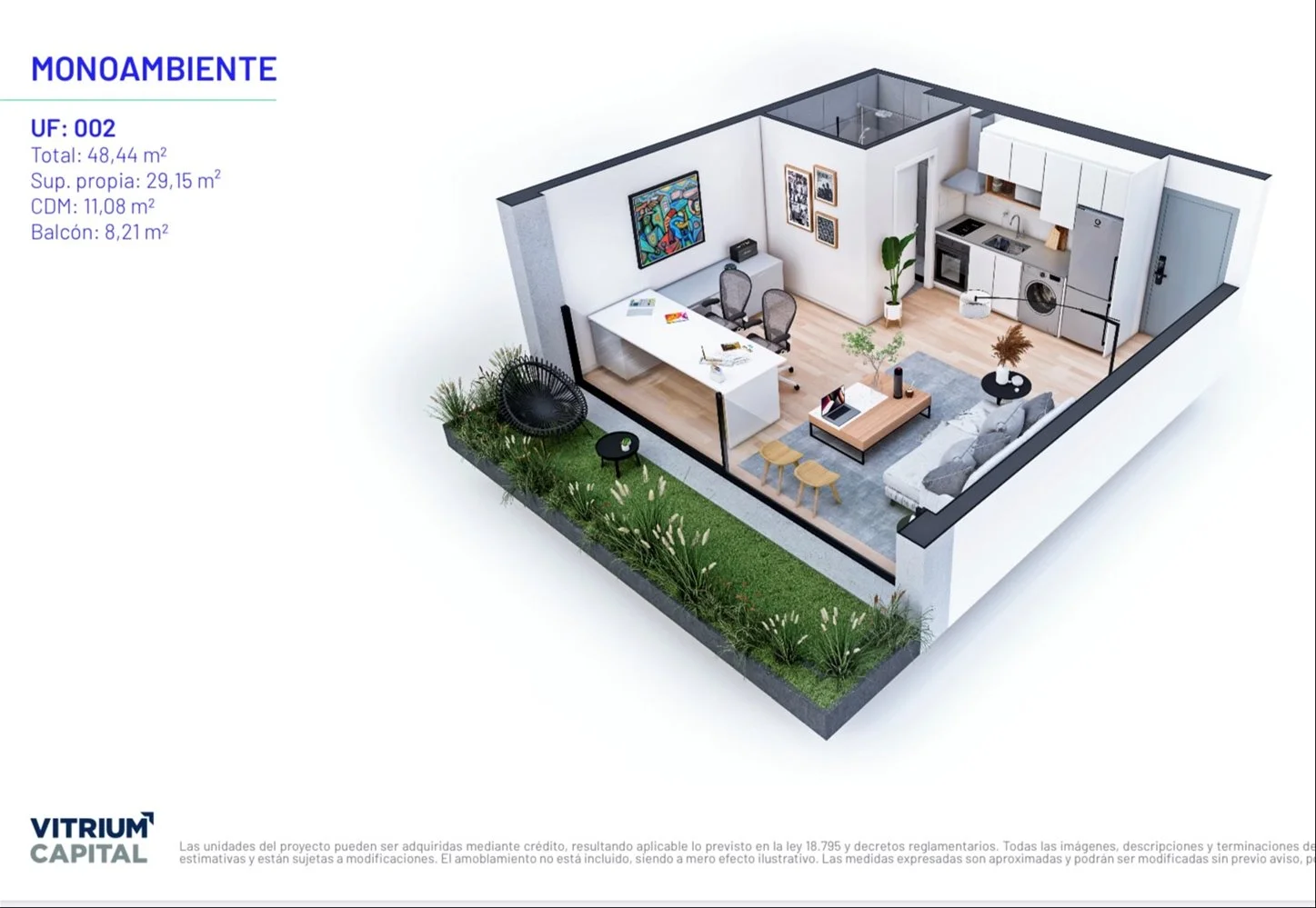 Monoambiente US$ 105.246 (beneficio en pago contado — US$ 92.616)