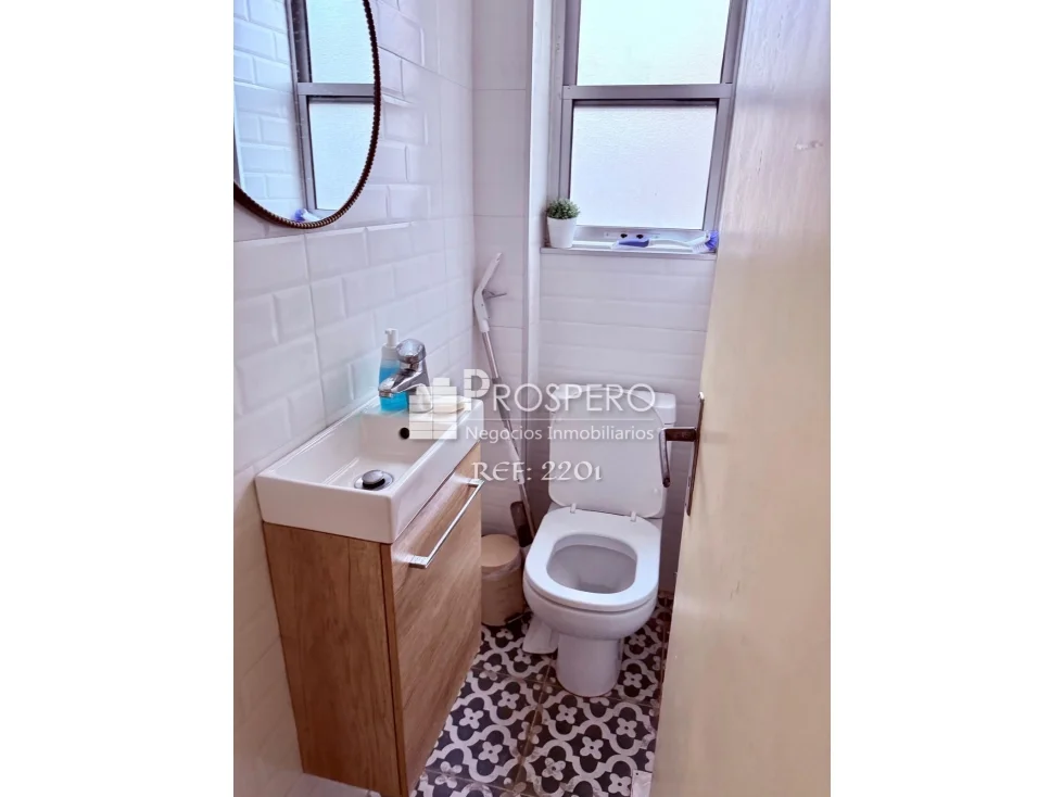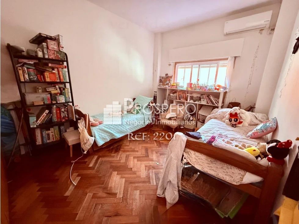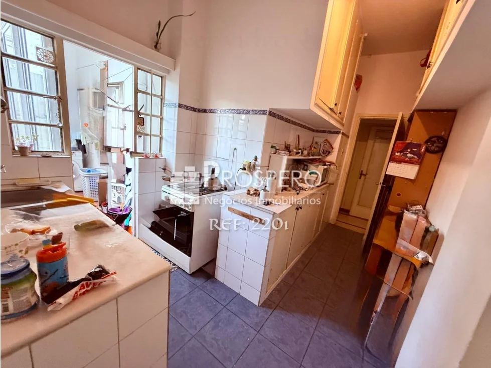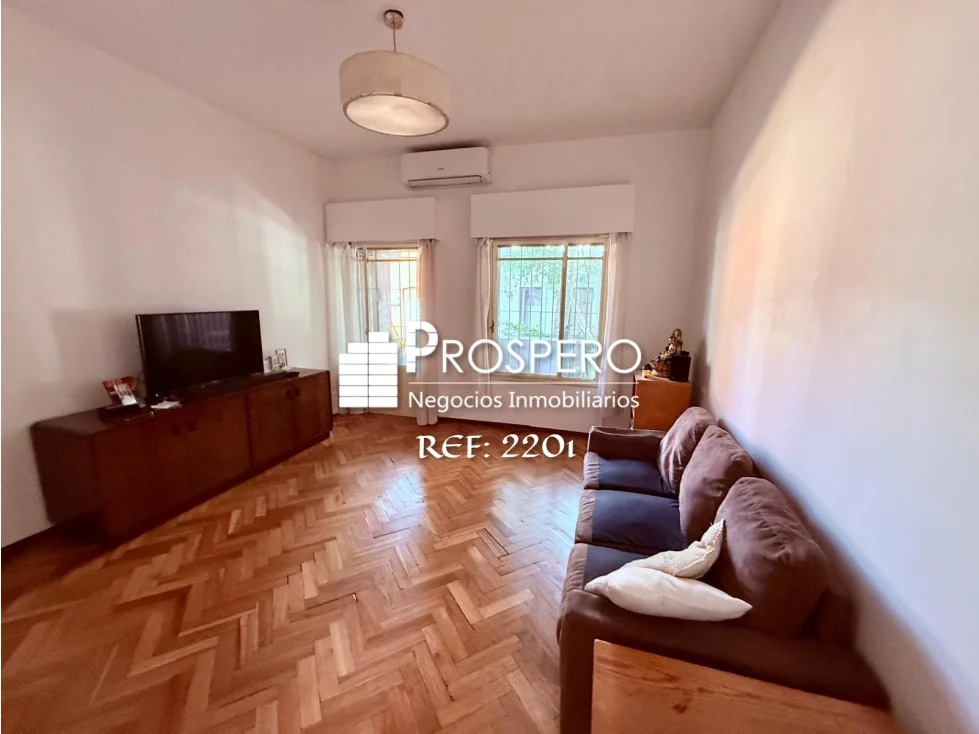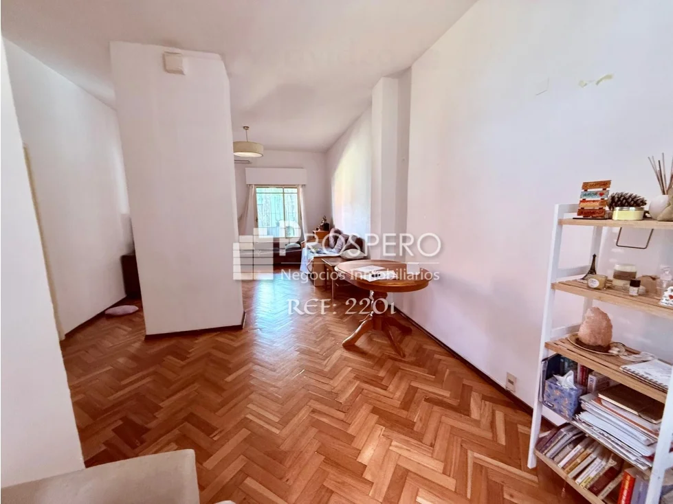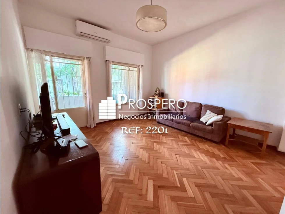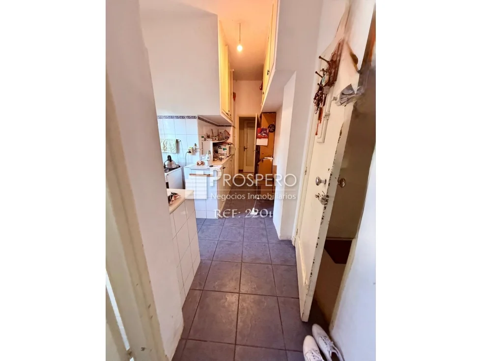 Amplio living-comedor al frente con salida a balcón, pasillo de distribución que conecta con los dormitorios, baño principal y cocina.