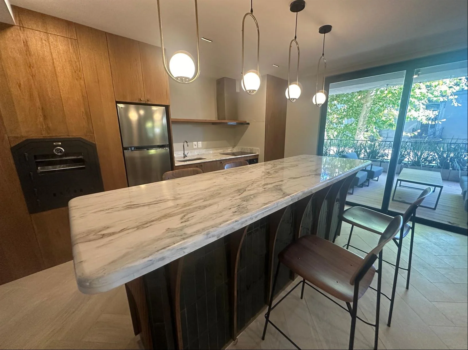 * Barbacos a nivel de la azotea equipada con parrillero y mobiliario