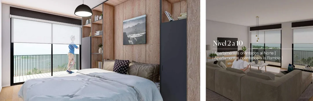 Vistas a la Rambla o al norte con excelente asoleamiento.