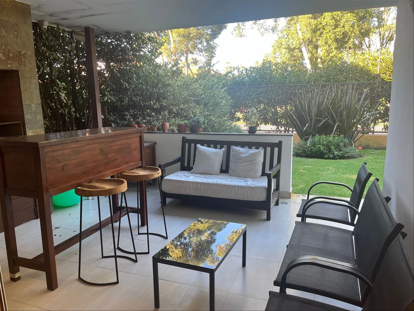 Como vivir en una casa con jardín y parrillero con muy buena terraza techada.