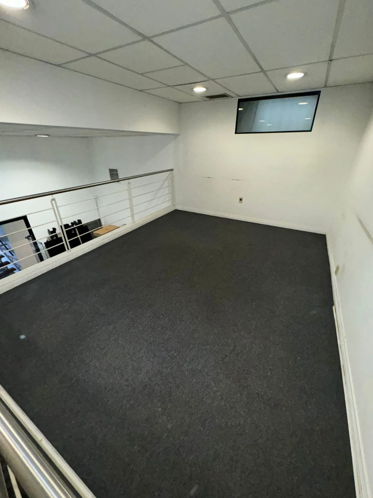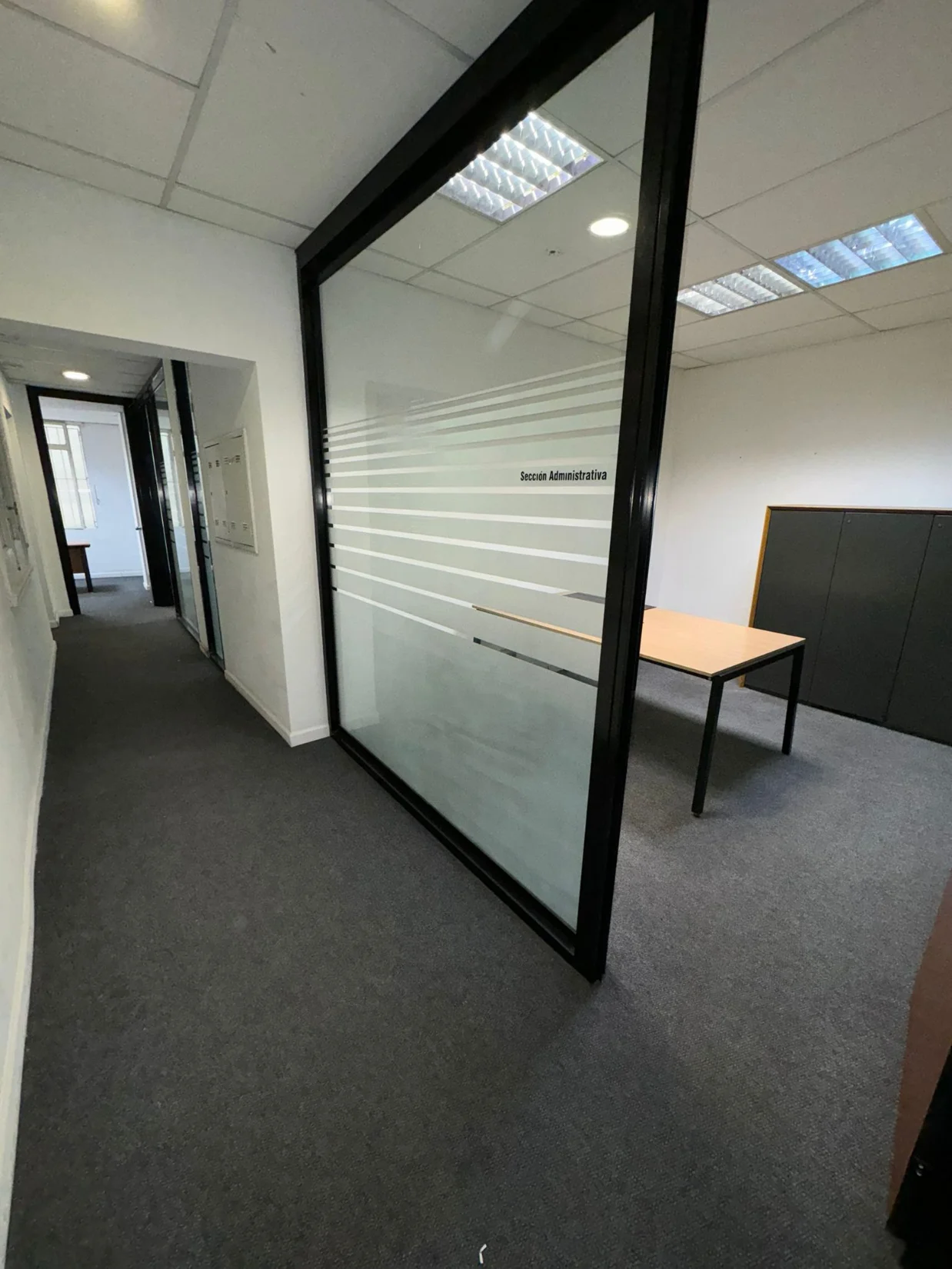 Oficinas (divisiones en yeso adaptables a medida), sala de conferencias, baño de damas y caballeros (nuevos), entrepiso con gran capacidad.