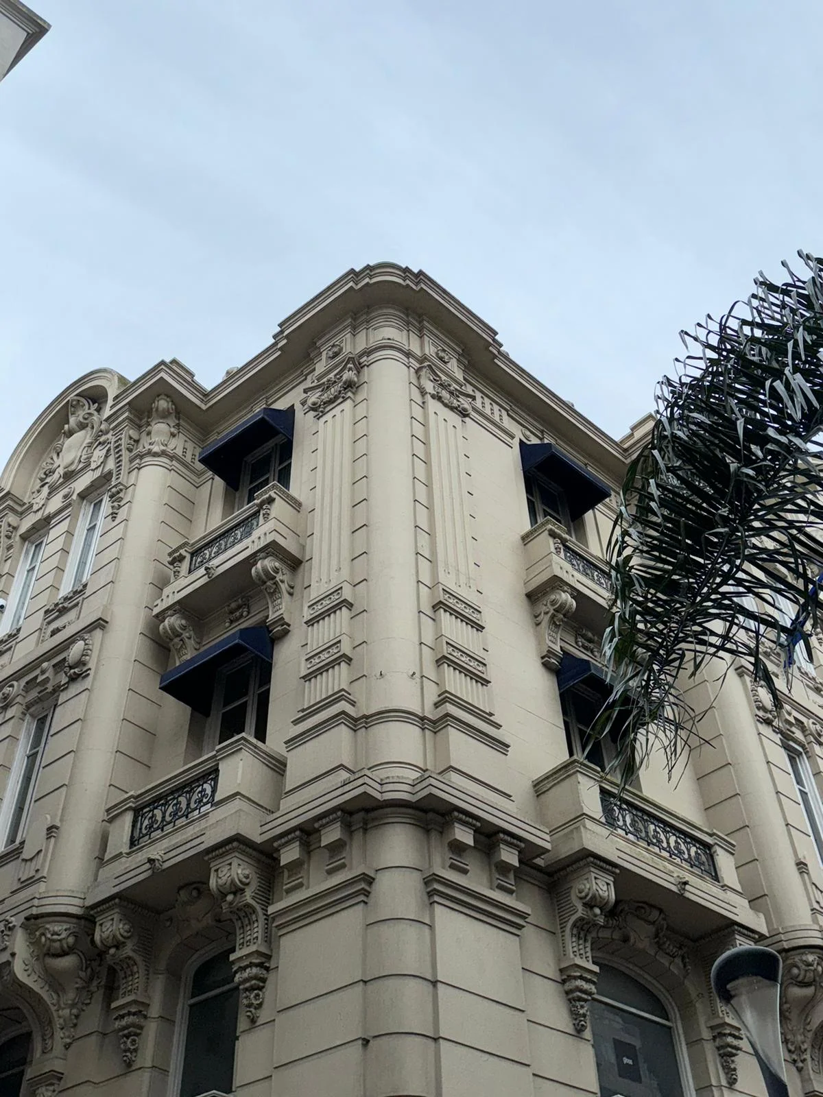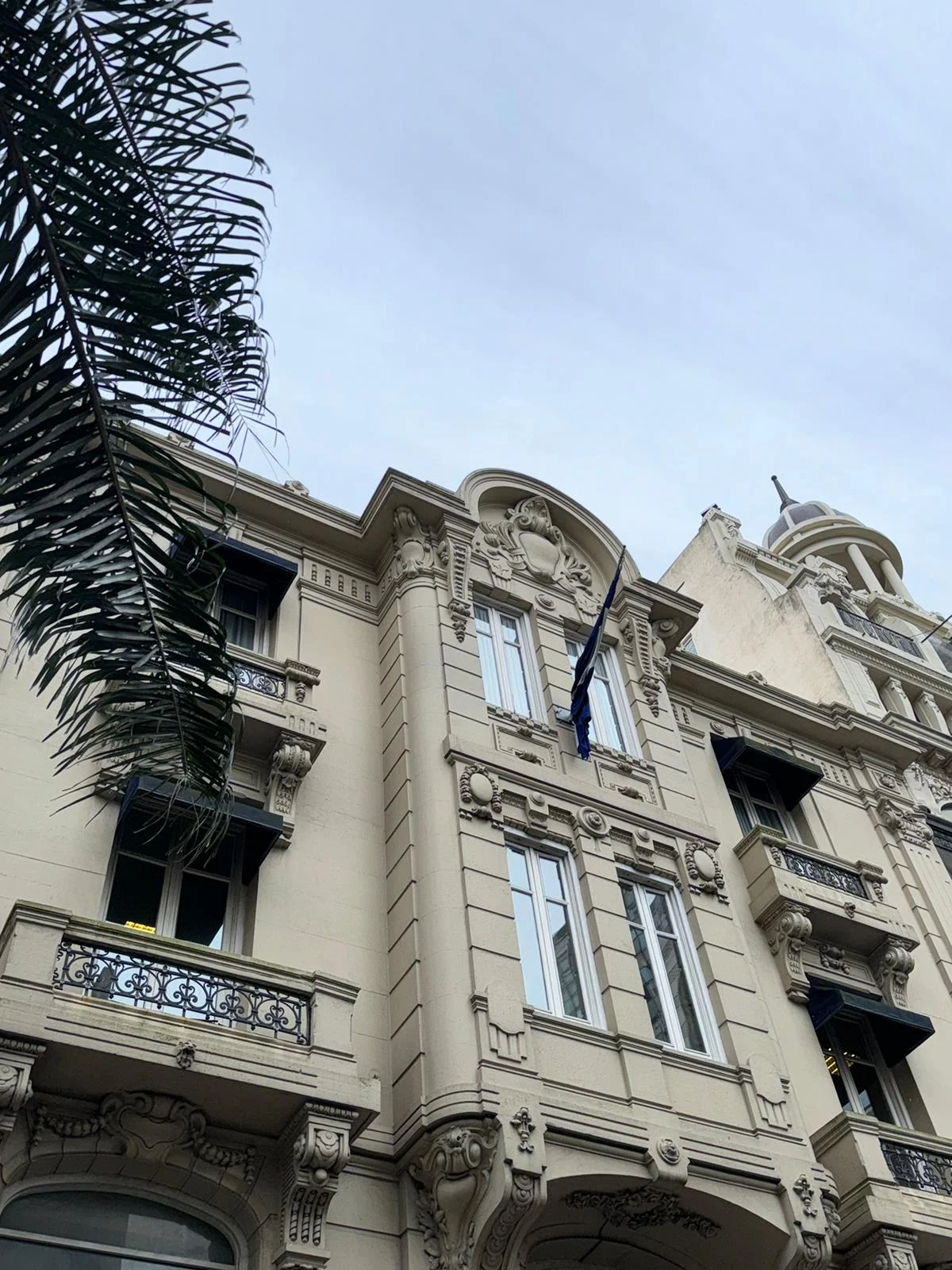 Fachada principal y lateral del edificio construido con estilo francés, con gran calidad de detalle y ornamentación destacándose características de elegancia. Se integra armónicamente con el entorno y contribuye por su contenido patrimonial al paisaje urbano.